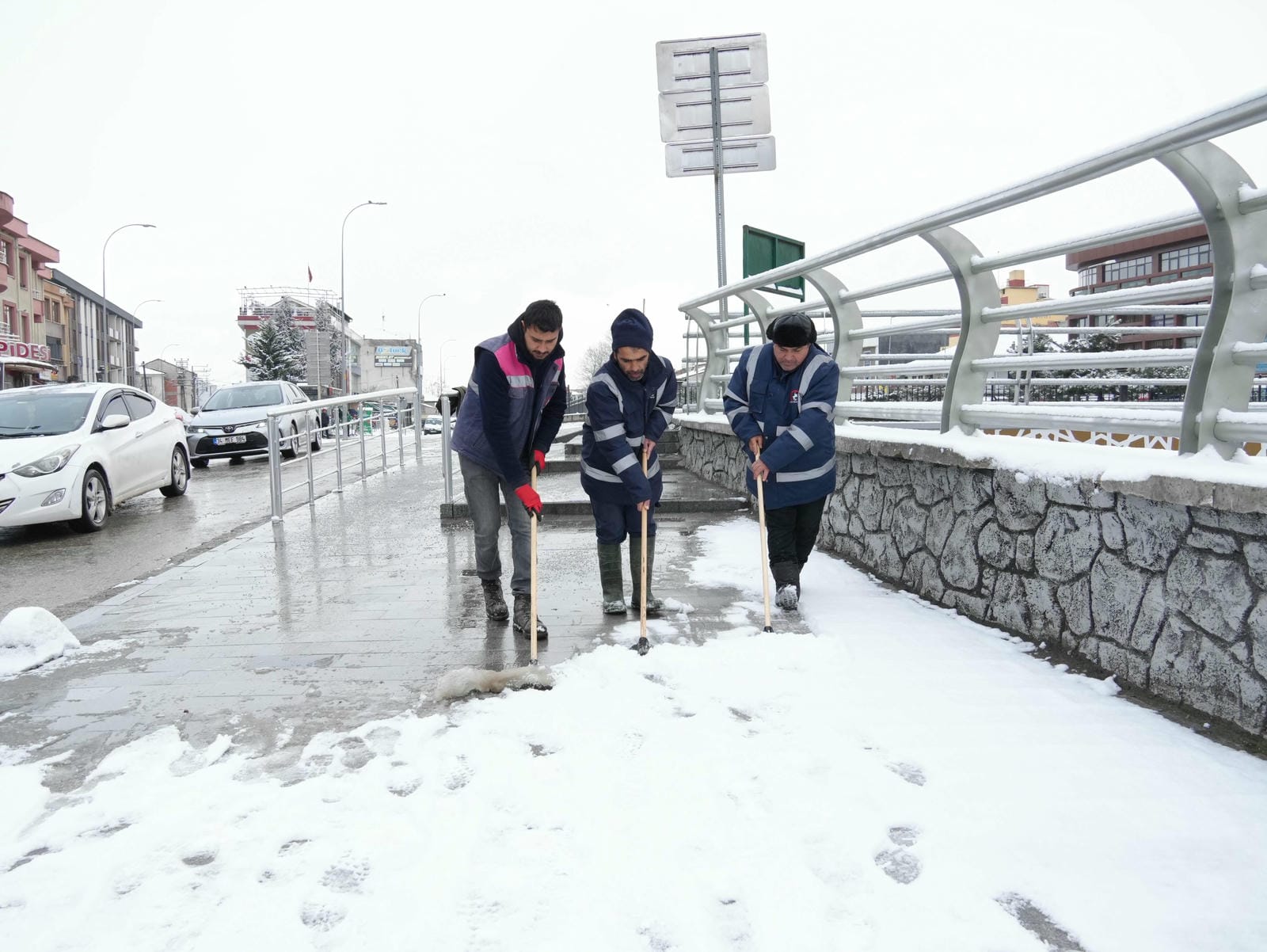Ekipler, olumsuz hava koşullarından dolayı yollarda buzlanma ve donma gibi durumların önüne geçmek için tuzlama ve küreme işlemlerini geceden sabaha sürdürdü.