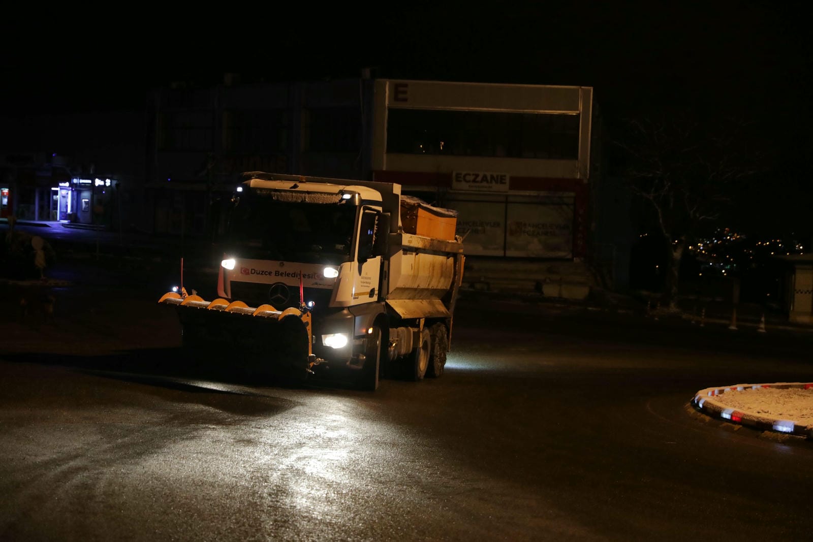 Düzce’de etkili olan yoğun kar yağışı öncesinde hazırlıklarını tamamlayan Düzce Belediyesi, kar yağışı ile birlikte mücadele çalışmalarına başladı. Dün gece itibariyle teyakkuza geçen ekipler, geceden sabaha kar kürüme ve tuzlama çalışmasını sürdürdü.