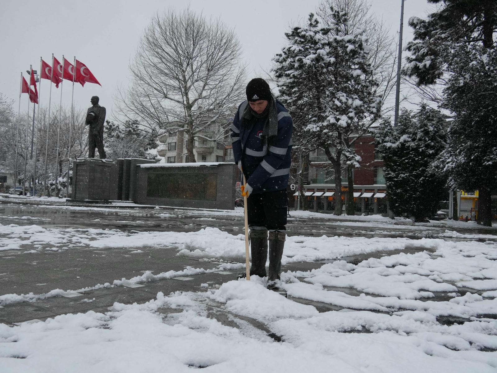 Kar yağışının getirdiği olumsuzluklarla kararlılıkla mücadele eden ekipler, vatandaşları zorunlu olmadıkça evden çıkmamaları, kış lastiği olmayan araçları kullanmamaları, karla mücadele çalışmalarını engelleyecek şekilde araç parklarından kaçınmaları konusunda uyarıyor.