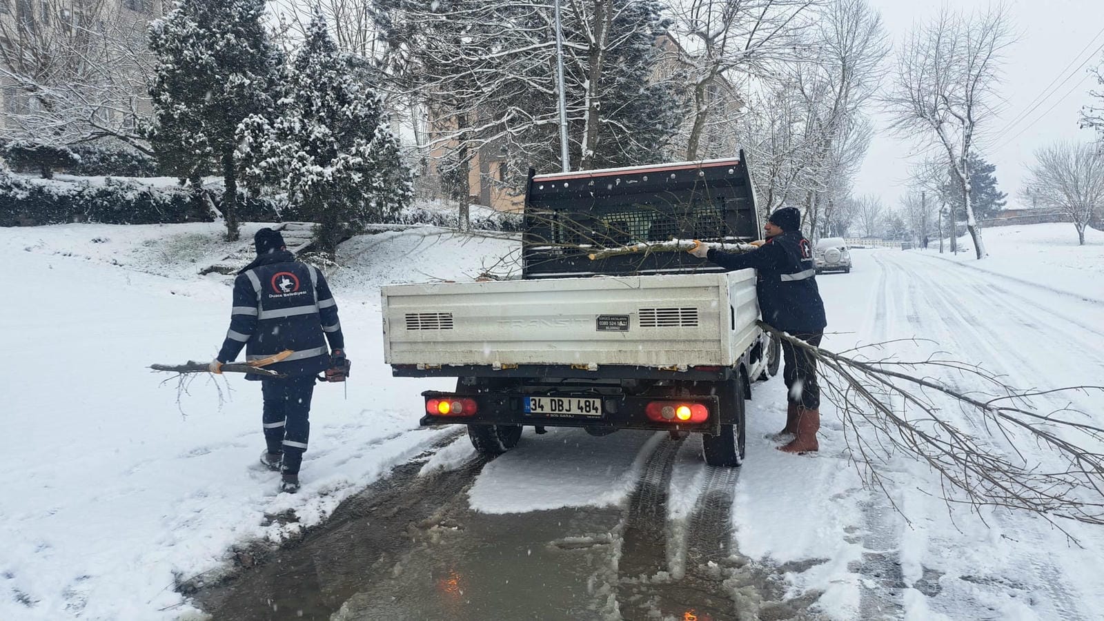 Ağaçların kar yükü nedeniyle devrilme riski taşıdığı bölgelerde ağaç budama çalışmaları da gerçekleştiriliyor. Belediyenin Park ve Bahçeler Müdürlüğü ekipleri, kar nedeniyle kırılma veya devrilme riski taşıyan ağaçları budayarak tehlikeleri ortadan kaldırıyor.