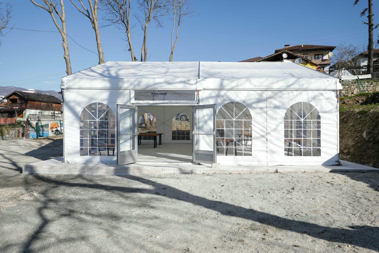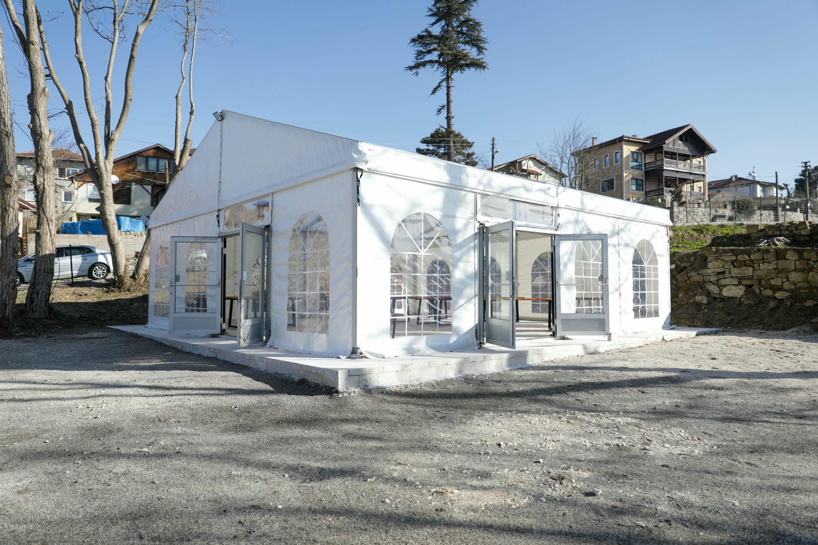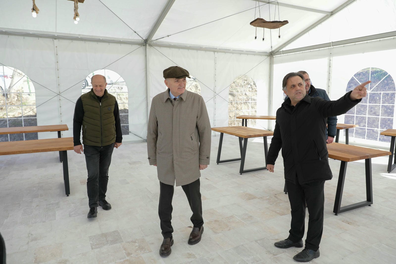 Tiyatronun üst kısmında kurulan ve toplamda 1.100 metrekarelik taban alanına sahip olan çadırı gezen Başkan Özlü, çadır içi ve çevresinde yapılacak düzenlemeler hakkında istişarelerde bulundu.