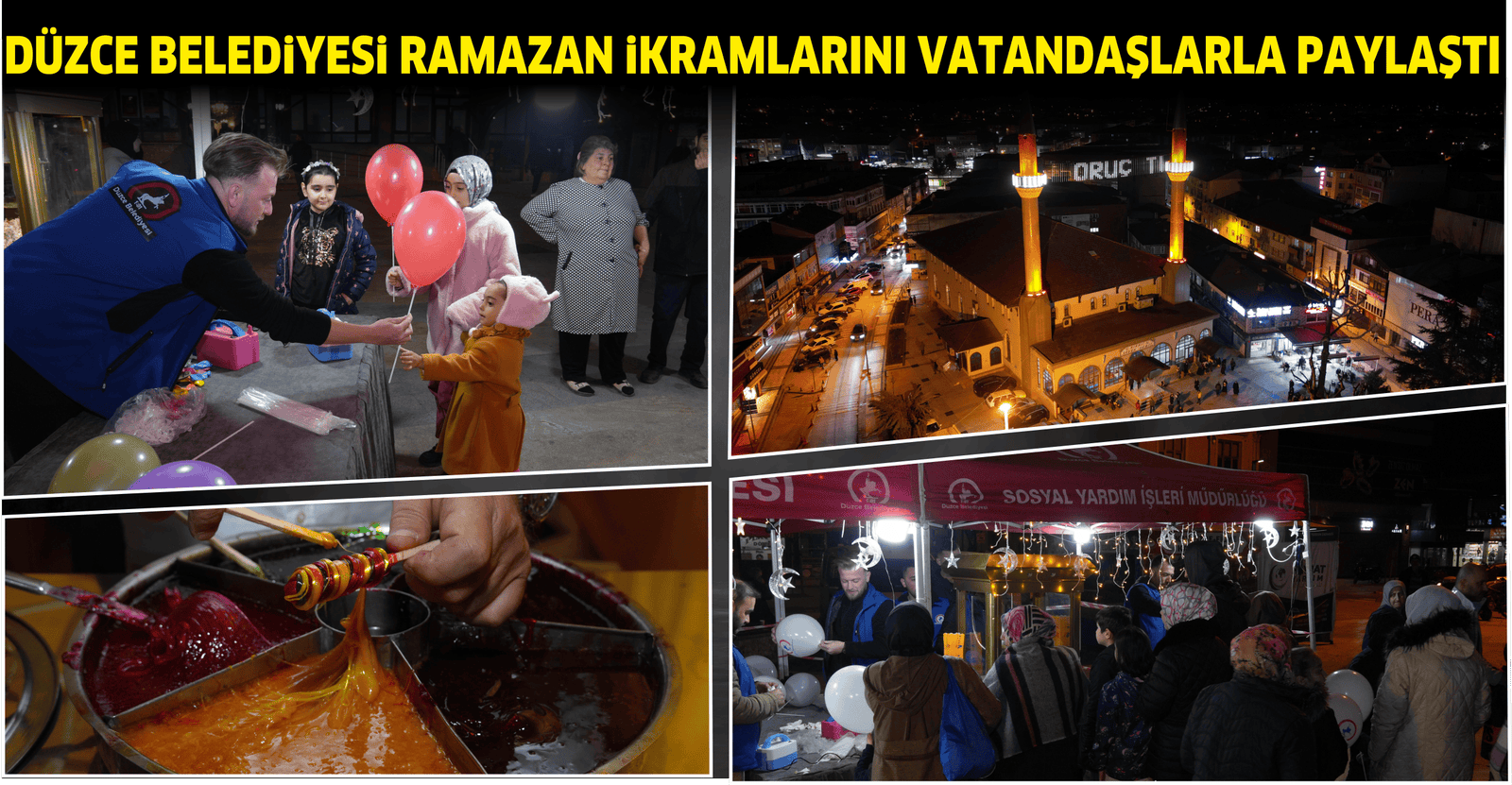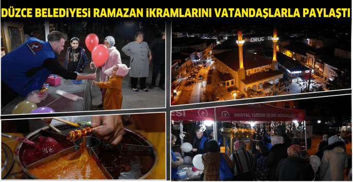 Düzce Belediyesi, Ramazan ayını daha anlamlı kılmak adına etkinliklerini sürdürüyor. Sosyal Yardım İşleri Müdürlüğü tarafından paylaşmanın ve dayanışmanın öne çıktığı Ramazan ayında vatandaşlarla ikramlıklar paylaşıldı. Büyük Cami önünde kurulan standda; patlamış mısır, pamuk şekeri, macun şekeri ve salep gibi lezzetler ile balonlar dağıtıldı. Stand, teravih namazı sonrası vatandaşların ilgisiyle karşılaştı.