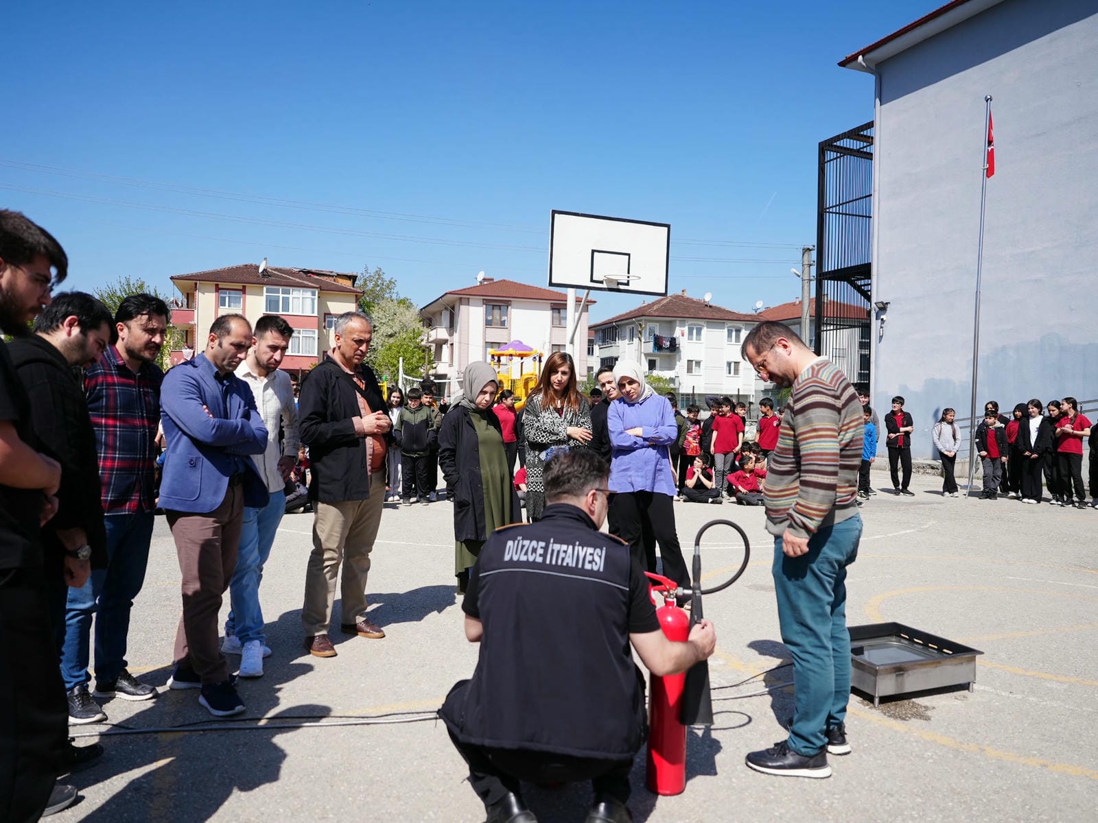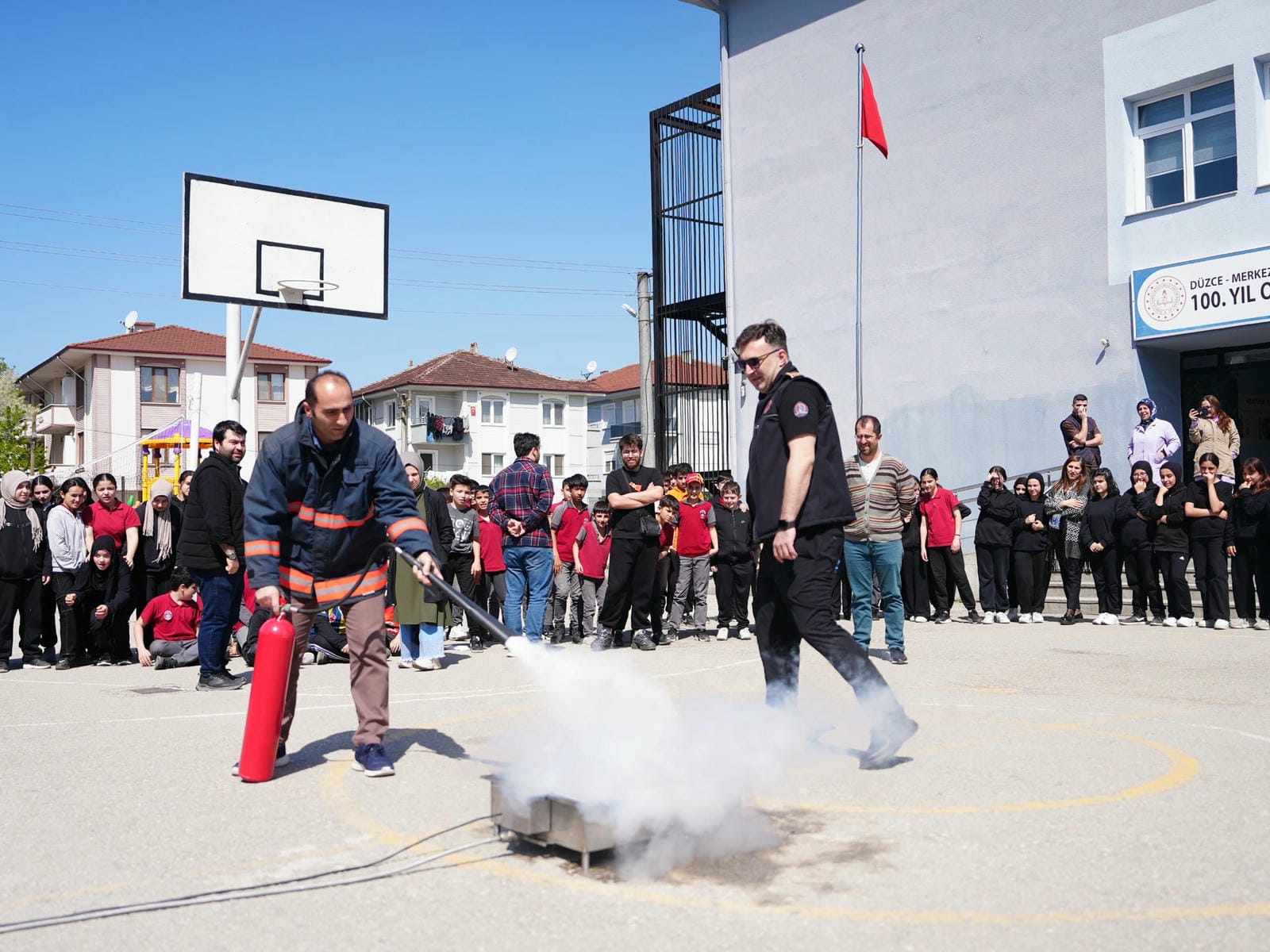 Bu kapsamda; Körpeşler Anaokulu, Şehit Cihan Aksarı Ortaokulu, TOKİ Mehmet Akif Ersoy İlkokulu, Düzce 100. Yıl Ortaokulu, Düzce Adnan Menderes Mesleki ve Teknik Anadolu Lisesi, Farabi Anadolu Lisesi ve Mehmet Zahid Kevseri İmam Hatip Ortaokulu’nda yangın güvenliği konusunda eğitim verilerek tatbikat yapıldı.