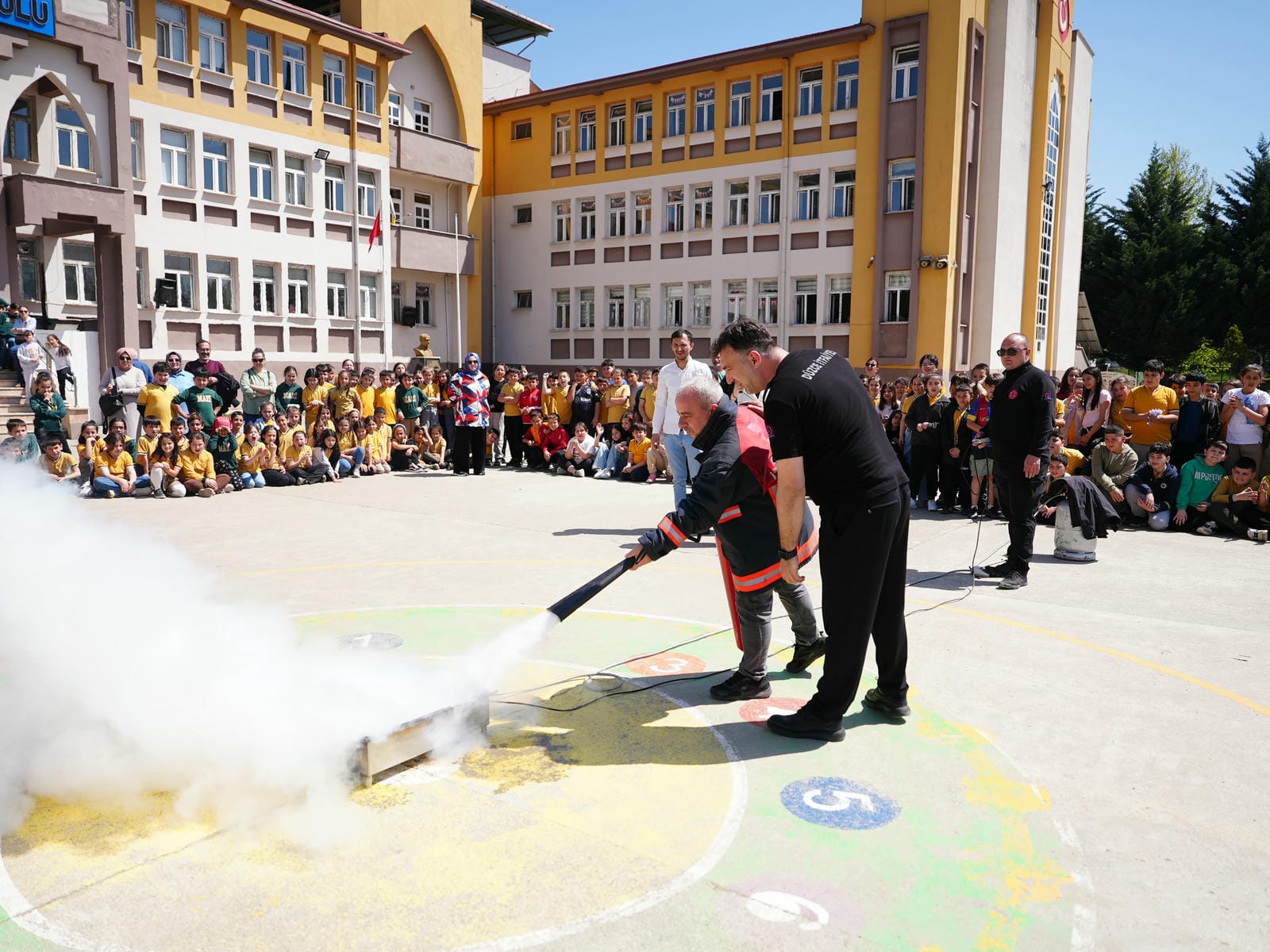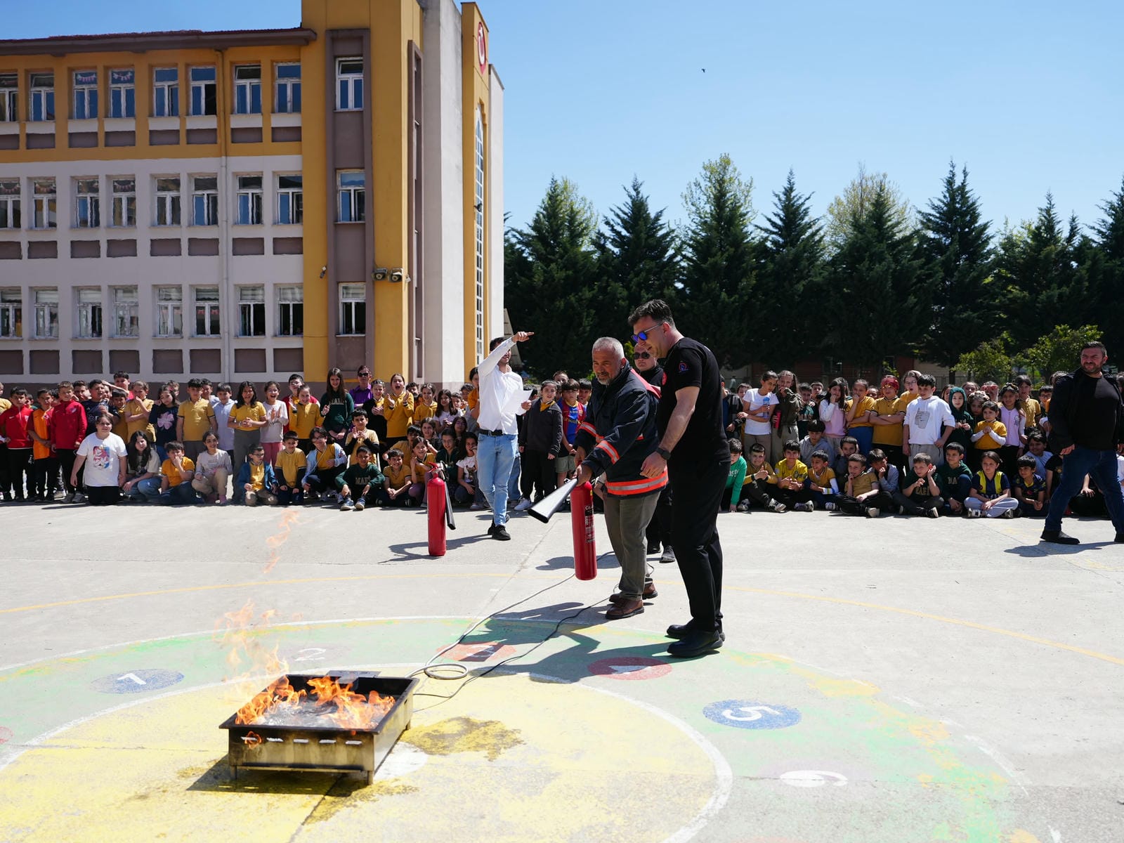 Düzce’de yangın güvenliği bilincini artırmak adına adeta bir seferberlik başlatan Düzce Belediyesi İtfaiye Müdürlüğü, 7 okuldaki 160 öğretmene teorik ve pratik bilgiler sundu, 900 öğrenciye de yangın güvenliği bilinci aşıladı.