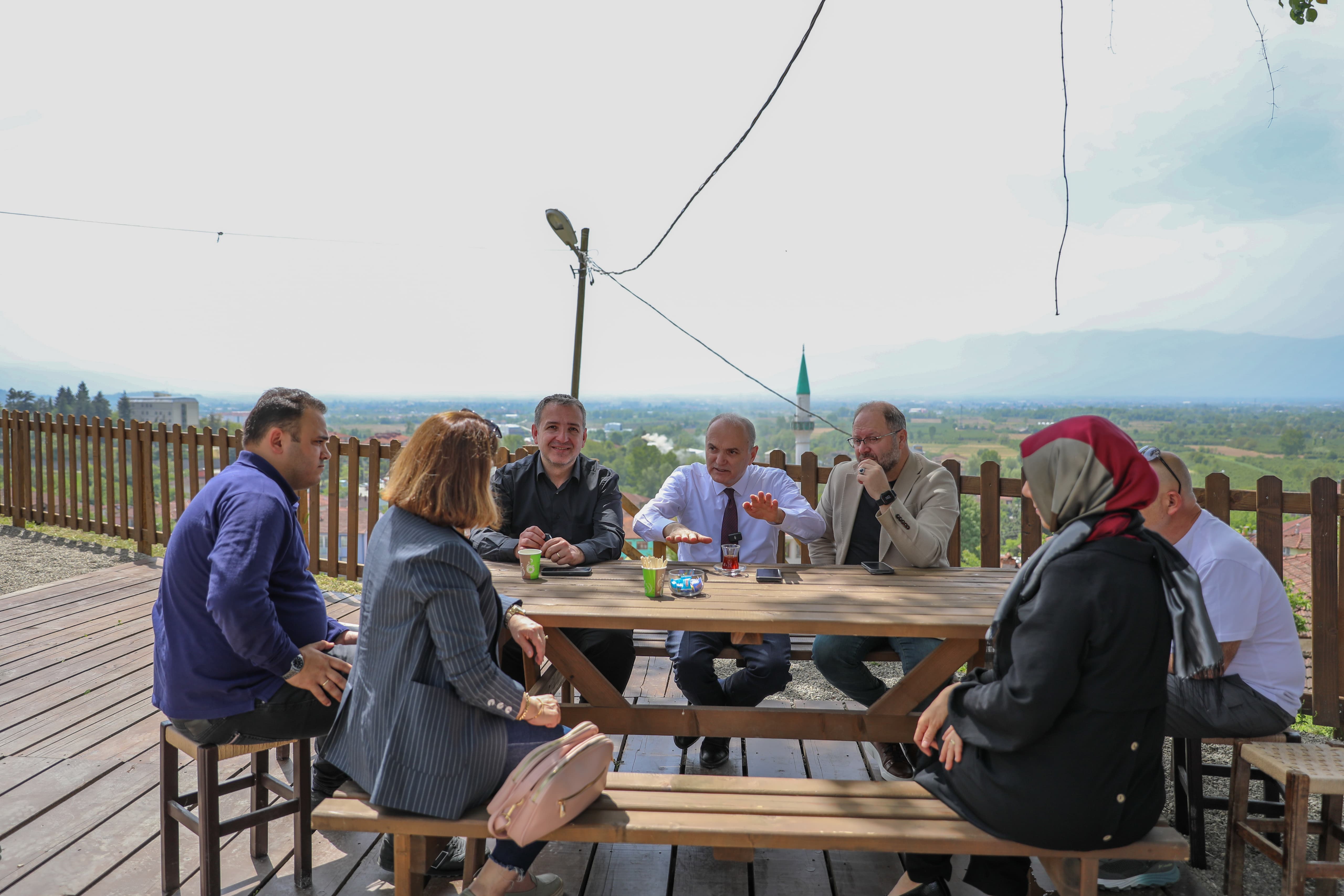 Düzce Belediye Başkanı Dr. Faruk Özlü, Konuralp Antik Tiyatrosu’nda devam eden düzenleme çalışmalarını yerinde inceledi. Antik tiyatronun seyir terasında yapılan değerlendirme toplantısına; Başkan Yardımcısı Barış Bayrak, Kültür İşleri Müdürü Burçin Sarıcan, Park ve Bahçeler Müdürü Mücella Öztürk, Düzce Üniversitesi Müzik Bölümü Başkanı Prof. Dr. Haluk Yücel ile turizm yatırımcıları Ergün Demir ve Zuhal Aksöz de katıldı. Toplantıda, antik tiyatronun sadece bir tarihi yapı olarak değil, aynı zamanda sosyal ve kültürel etkinliklerin merkezi haline getirilmesi amacıyla yapılacak projeler masaya yatırıldı.