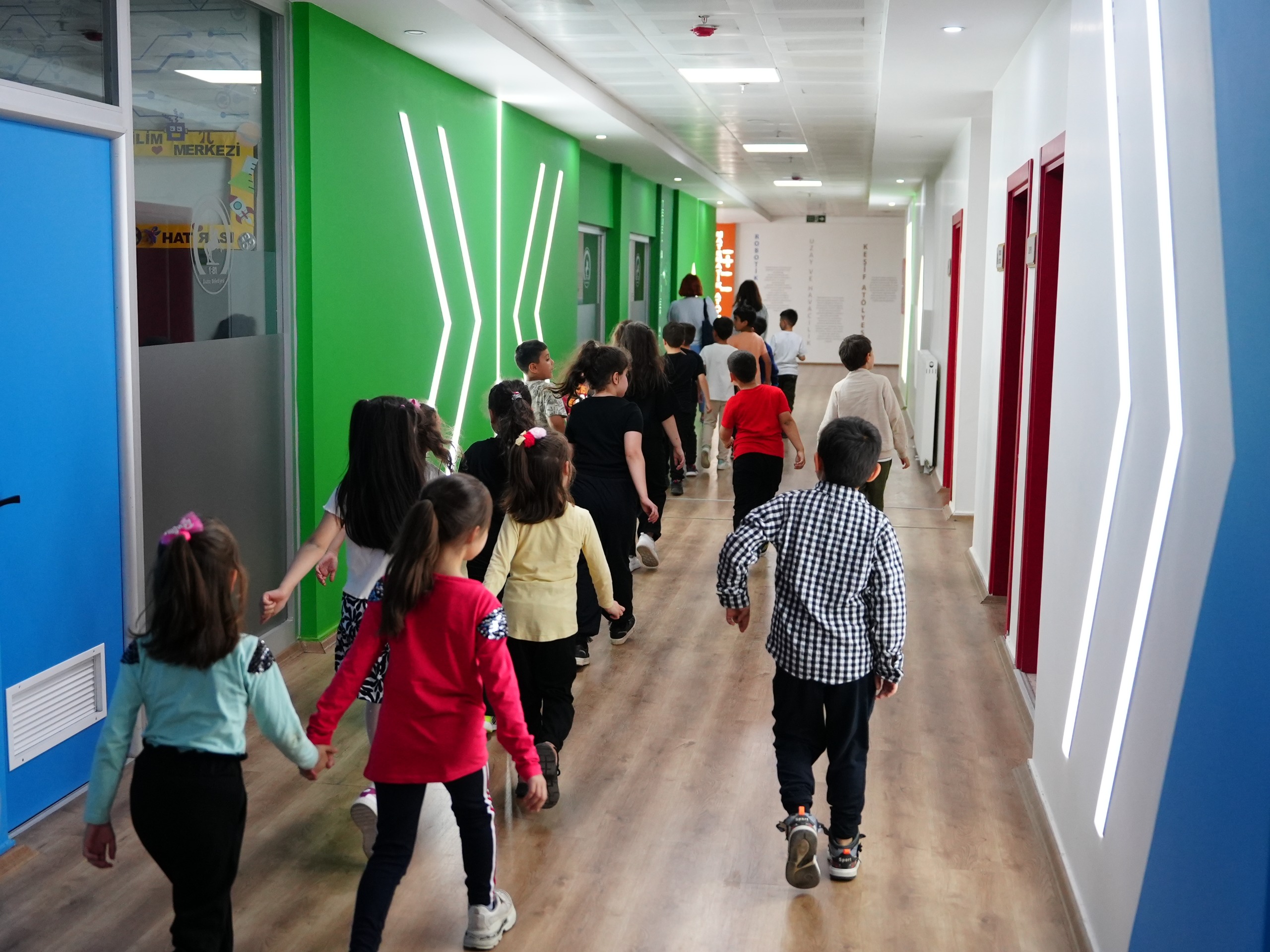 34 öğrenciden oluşan grup, öğretmenleri eşliğinde etkileşimli sergi alanını gezdikten sonra dersliklerde düzenlenen atölyelere katılarak teorik bilgiler aldı, etkinliklere katılarak unutulmaz bir gün yaşadı.