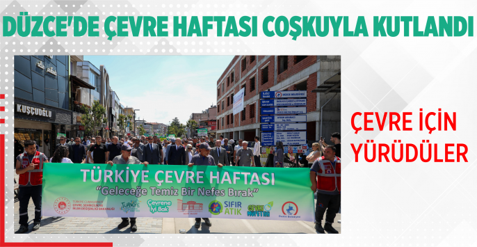 Türkiye Çevre Haftası etkinlikleri Düzce’de kortej yürüyüşüyle başladı. Cedidiye Meydanı’ndan Millet Bahçesi’ne uzanan yürüyüşe; Vali Selçuk Aslan, Belediye Başkanı Dr. Faruk Özlü, protokol üyeleri ve öğrenciler katıldı. Düzce Belediyesi Temizlik İşleri Müdürlüğü personelleri ellerinde taşıdıkları dövizler ile çevreye duyarlılık konusunda önemli mesajlar verdi. Öğrenciler ise birbirinden renkli sıfır atık temalı kostümleri ile yürüyüşe renk kattı.