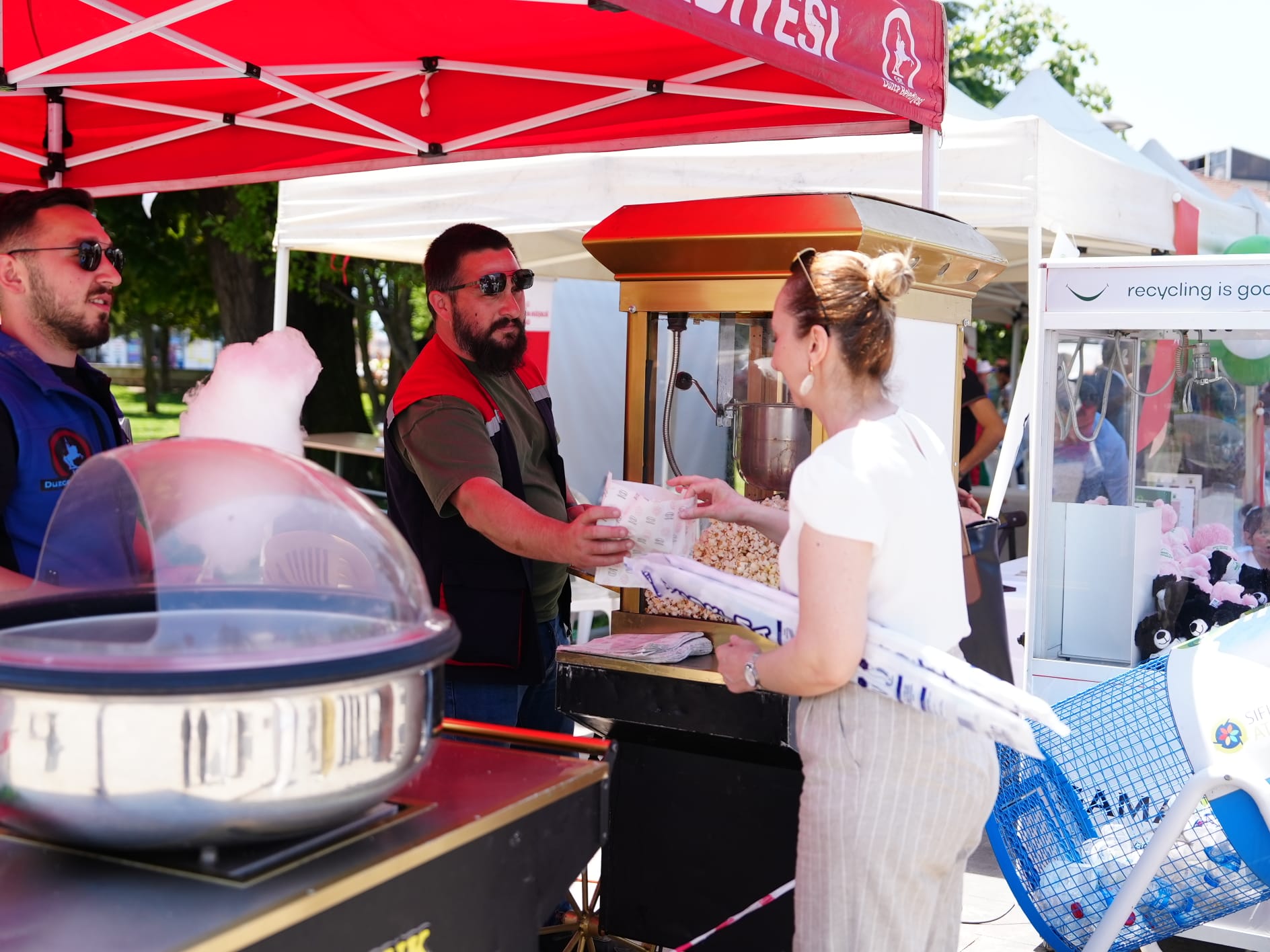 Düzce Belediyesi Çocuk Üniversitesi tarafından düzenlenen boyama etkinliği çocukların ilgisini çekerken, Sosyal Yardım İşleri Müdürlüğü tarafından kurulan stantlarda da pamuk şeker, patlamış mısır gibi ikramlar sunuldu.