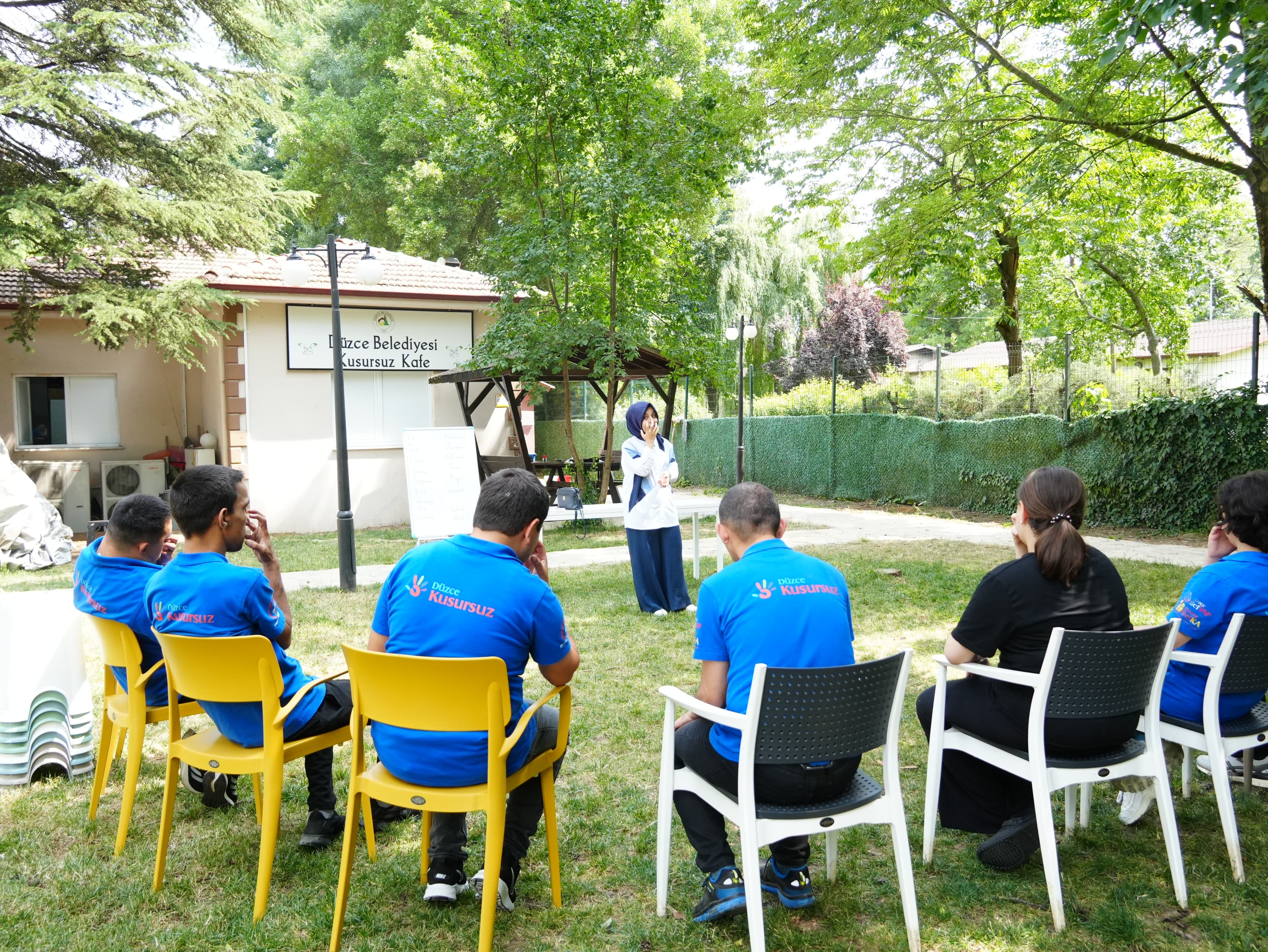 Şirketlerimize bağlı sosyal tesislerde müşteri memnuniyetini artırmak ve özel bireylerle iletişimi geliştirmek amacıyla Düzce BELMEK iş birliğiyle 20 çalışanına işaret dili eğitimi veriyor. Eğitim alanlar arasında, Kusursuz Kafe’nin özel bireylerden oluşan kadrosu da bulunuyor.