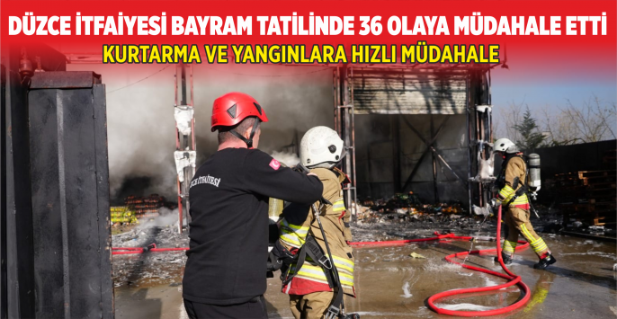 Düzce Belediyesi İtfaiye Müdürlüğü, 4 günlük Kurban Bayramı tatili boyunca trafik kazası, kurtarma ve yangın olmak üzere toplam 36 vakaya hızlıca müdahale ederek vatandaşların güvenliğini sağladı.