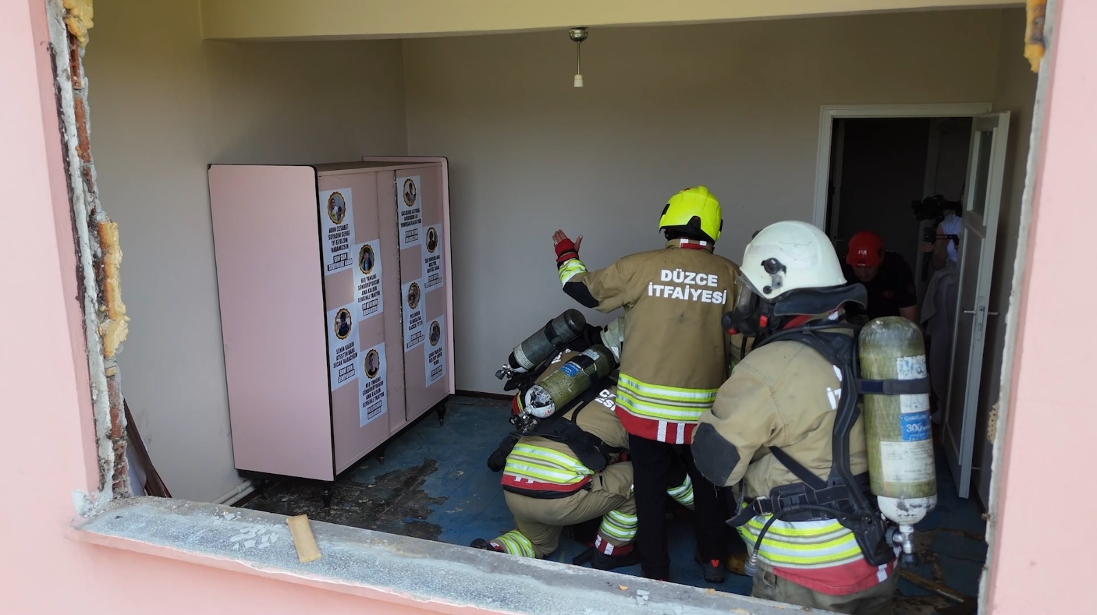 Tatbikat gereği; gelen bir ihbar üzerine itfaiye ekipleri, ev yangınında mahsur kalan vatandaşı kurtarmak üzere harekete geçti. Kısa sürede olay yerine ulaşan ekipler binaya girdi ve dolabın altında kalan cansız mankeni kurtarmaya çalıştı. Ekipler, kendileri için hazırlanan sürprizden habersiz şekilde görevlerini yerine getirirken, dolabın üzerine yapıştırılan kendi çocuklarının fotoğraflarını ve yazdıkları mesajları fark etmedi. İtfaiye Müdürü Mehmet Ali Kahraman’ın yönlendirmesiyle dolaba dikkatlice bakan ekipler, çocuklarının fotoğraflarını gördüklerinde ise büyük şaşkınlık ve sevinç yaşadı.