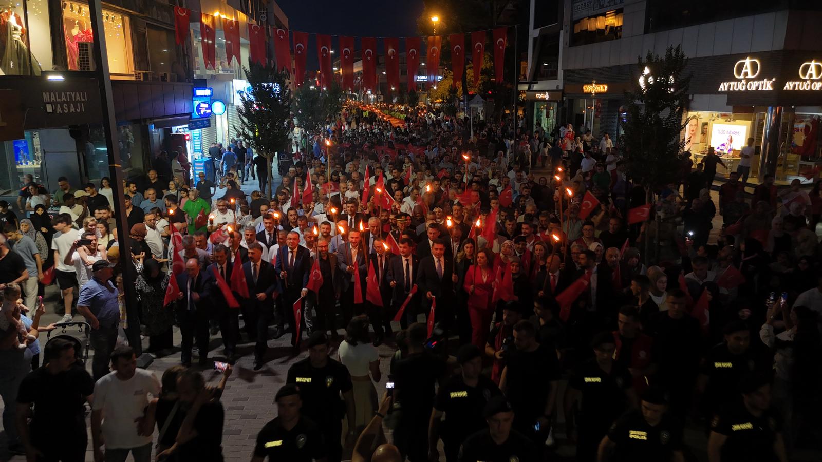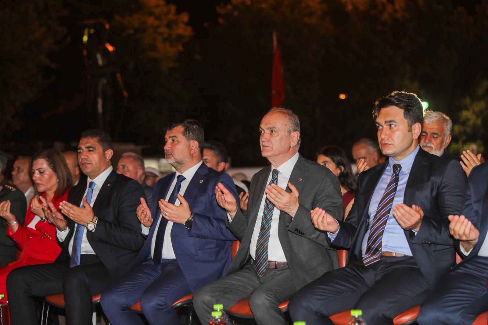 Belediye Başkanı Dr. Faruk Özlü ise konuşmasında, “Ben mensubu olduğum Türk milletinden ve Türk milletinin tarihinden her zaman gurur duydum. Milletimizi de çok seviyorum. Bu milletin mensubu olmaktan onur duyuyorum. Ama tarihimizde öyle dönüm noktaları var ki onlar gerçekten bize hiç yakışmayan hadiselerin vuku bulduğu dönüm noktaları. Bunlardan birisi 27 Mayıs darbesidir. Asla ve kata bize yakışmayan bir darbedir ve de başarılı olmuştur. Bir diğeri 12 Eylül darbesidir. O da bizim için tarihimizde kara bir lekedir. Devam eden süreçte 12 Eylül’ü hatırlıyorum. Lise son sınıftaydım ve tüm süreci biliyorum. Yine daha sonra 12 Mart Muhtırası ve 23 Nisan bildirgesi vardır. Ama en son yaşadığımız 15 Temmuz darbe girişimidir. Diğer girişimler kısmen başarılı olmuştur. Ama 23 Nisan ve akabinde gelen 15 Temmuz darbe girimi çok şükür başarılı olmamıştır. 15 Temmuz akşamı yaşadığımız hadiseler bana çok garip geldi. İçinde yaşadığımız asırda bir darbe girişiminin olabileceğine, insanların buna tevessül edebileceğine asla ihtimal vermedim. Ama maalesef doğruydu. Aziz milletimizin feraseti, Türkiye’deki siyasi liderliğin dirayeti sayesinde bu darbe girişimi engellendi, başarıya ulaşmadı. Şehitler verdik, kayıplarımız var. Ama Allah bizi korudu. Çünkü bu darbe girişiminin arkasında olan insan Amerika’daydı. Yurt dışı odaklı bir darbe girişimi idi. Ben bu vesileyle şehitlerimize Allah’tan rahmet diliyorum. Gazilerimize uzun ömürler diliyorum. Allah bir daha milletimize böyle bir gece yaşatmasın” şeklinde konuştu.