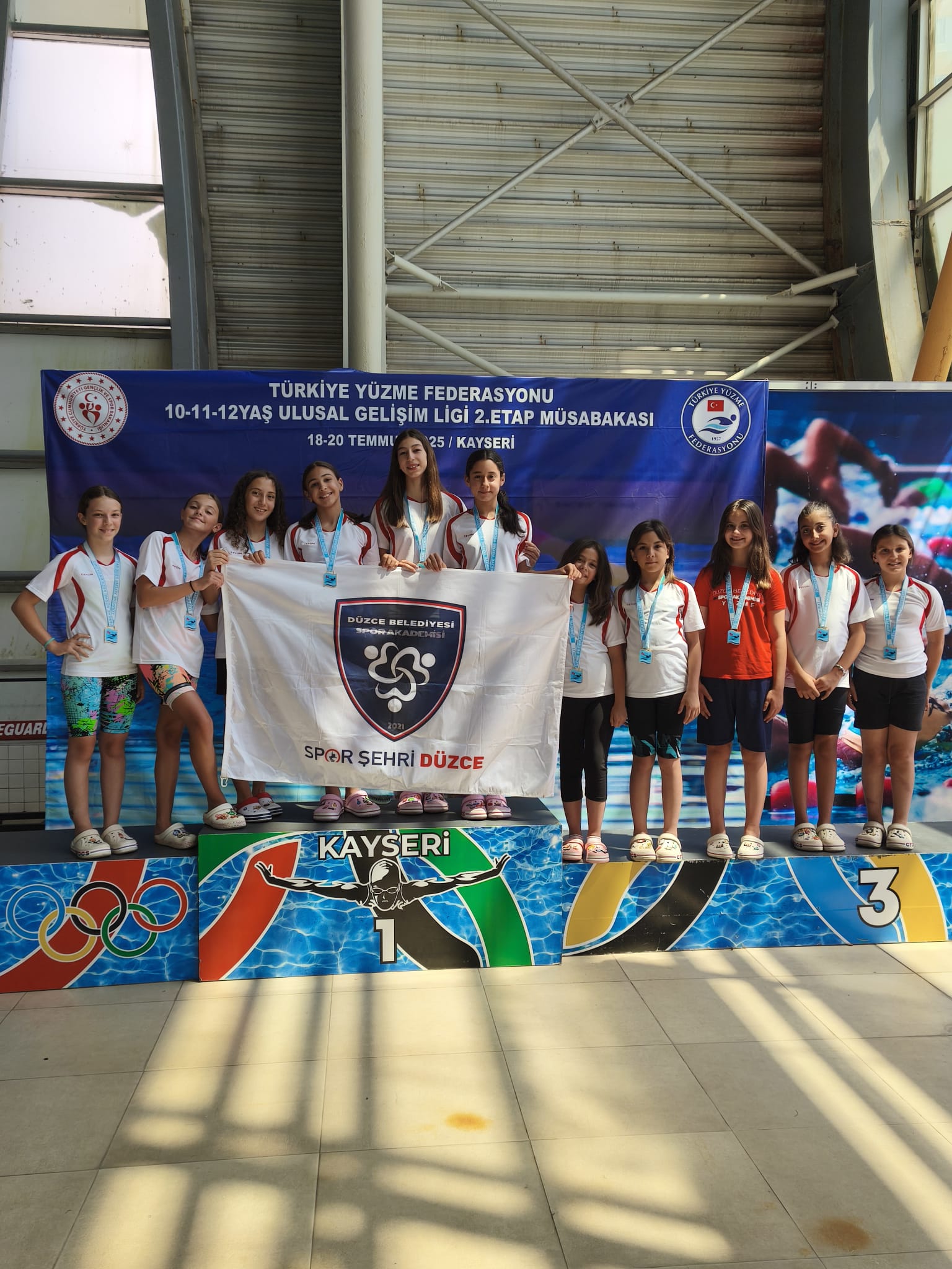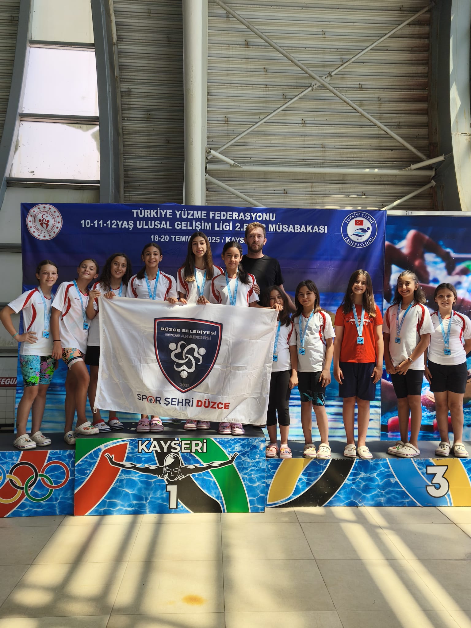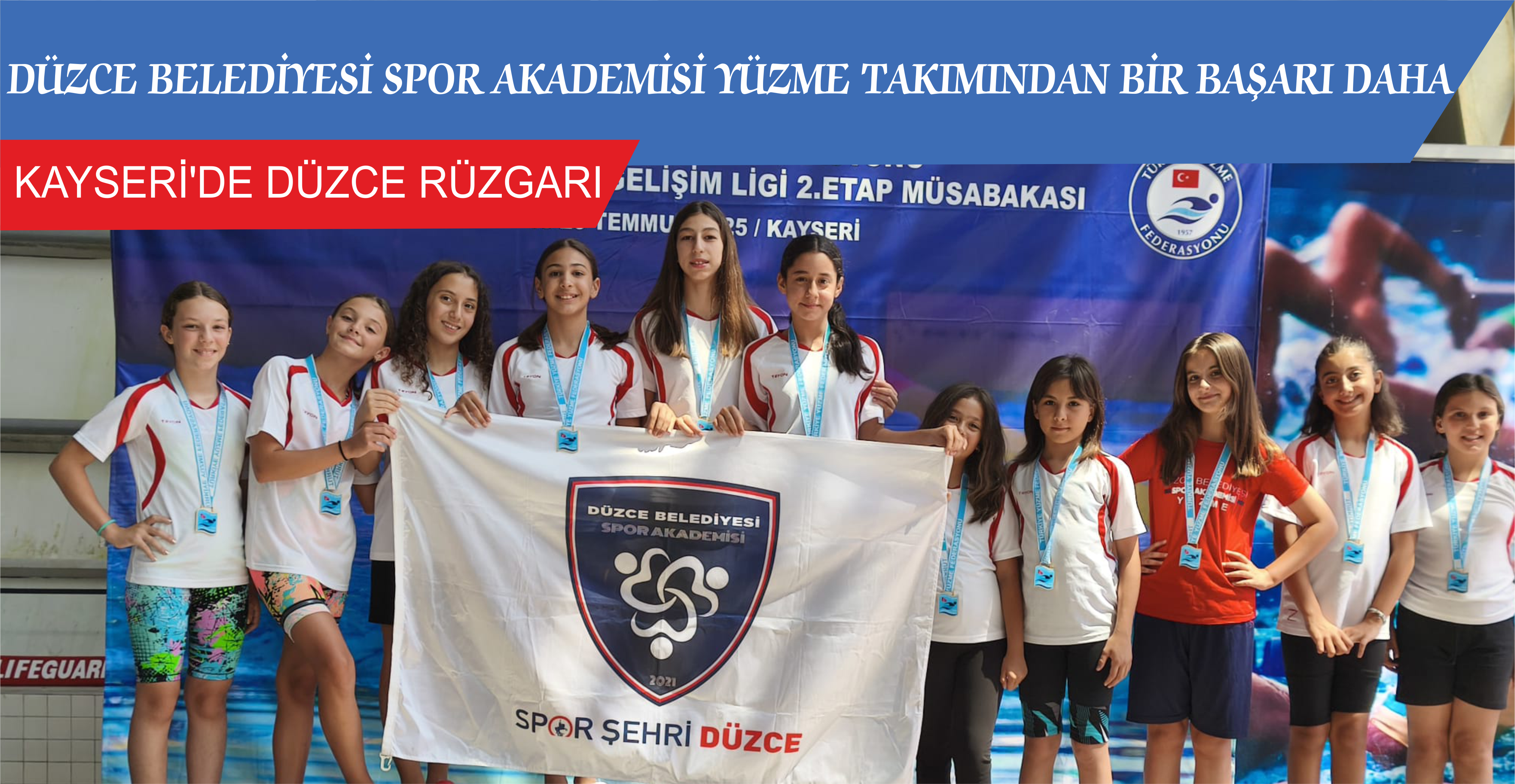 Türkiye Yüzme Federasyonu tarafından düzenlenen 10-11-12 Yaş Ulusal Gelişim Ligi 2. Etap Müsabakaları, 18-20 Temmuz 2025 tarihleri arasında Ankara, Bolu, Gebze, Kayseri, Konya ve Samsun illerinde eş zamanlı olarak gerçekleştirildi. Kayseri’de düzenlenen Ulusal Gelişim Ligi 10 Yaş Finali ile 11-12 Yaş 2. Etap Yarışları’nda mücadele eden Düzce Belediyesi Spor Akademisi Yüzme Takımı büyük bir başarıya imza attı.