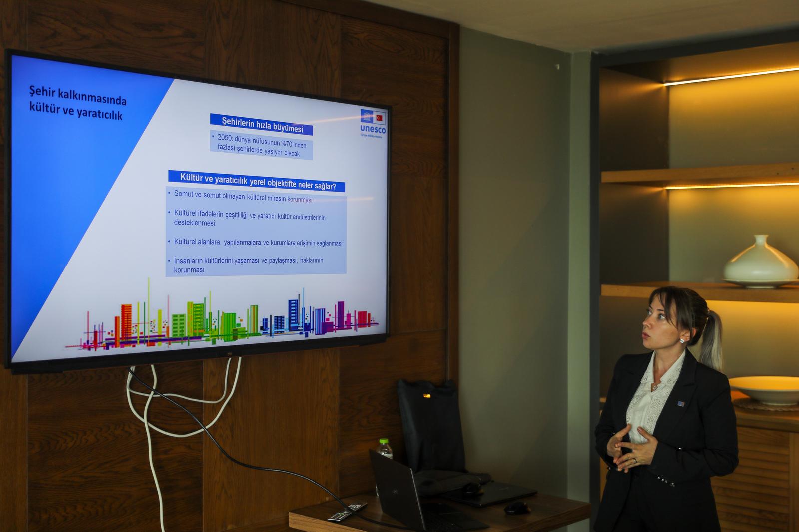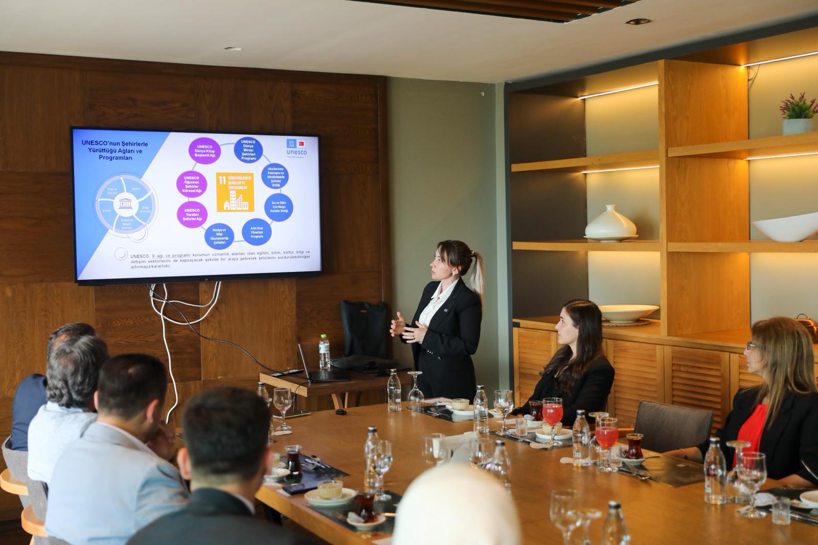Toplantıda, UNESCO Genel Sekreter Yardımcısı Vekili Dr. Azize Ökten, UNESCO’nun şehirlerde yürüttüğü uluslararası ağlar ve programlar hakkında bir sunum gerçekleştirerek programa başvuru şartları ve süreçleri hakkında detaylı bilgiler verdi.