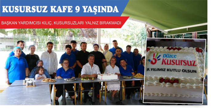 Düzce Belediyesi iştirak şirketi Beltur çatısı altında çalışan 2017 yılında bu yana başarılı şekilde hizmetlerini aksatmadan yerine getiren Kusursuz Kafe 9’ncu yaşını coşkuyla kutladı. Gerçekleştirilen kutlama etkinliğinde Düzce Belediye Başkan Yardımcısı Ayşe Kılıç ve  Beltur A.Ş. Genel Müdürü Erdem Yılmaz da kafenin kusursuz çalışanlarını yalnız bırakmadı.