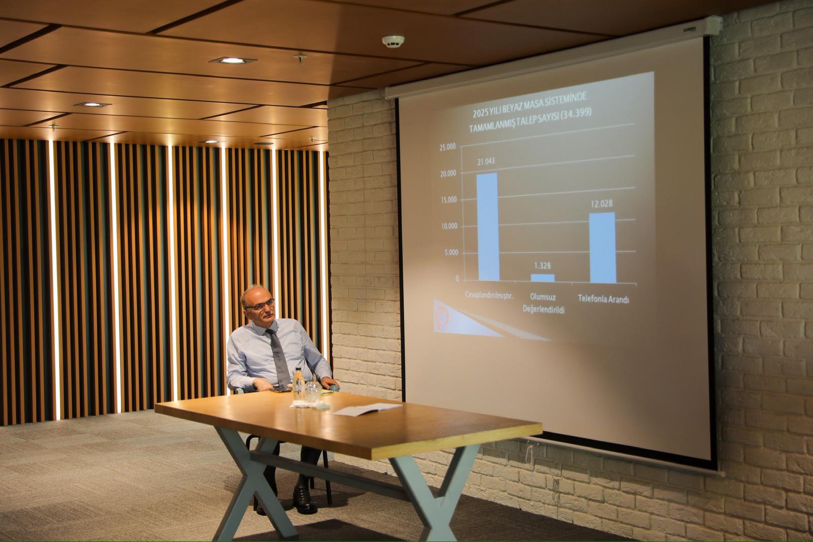 Toplantıda birçok farklı kanaldan Beyaz Masa’ya gelen taleplerin sonuca ulaşma aşamaları ve müdürler ile ortak yürütülen çalışmalar ayrıntılı olarak görüşüldü. Sistemin iyileştirilmesi ve talep muhataplarının daha detaylı bilgilendirilmesi konularında yeni stratejiler geliştirilmesi kararlaştırıldı.