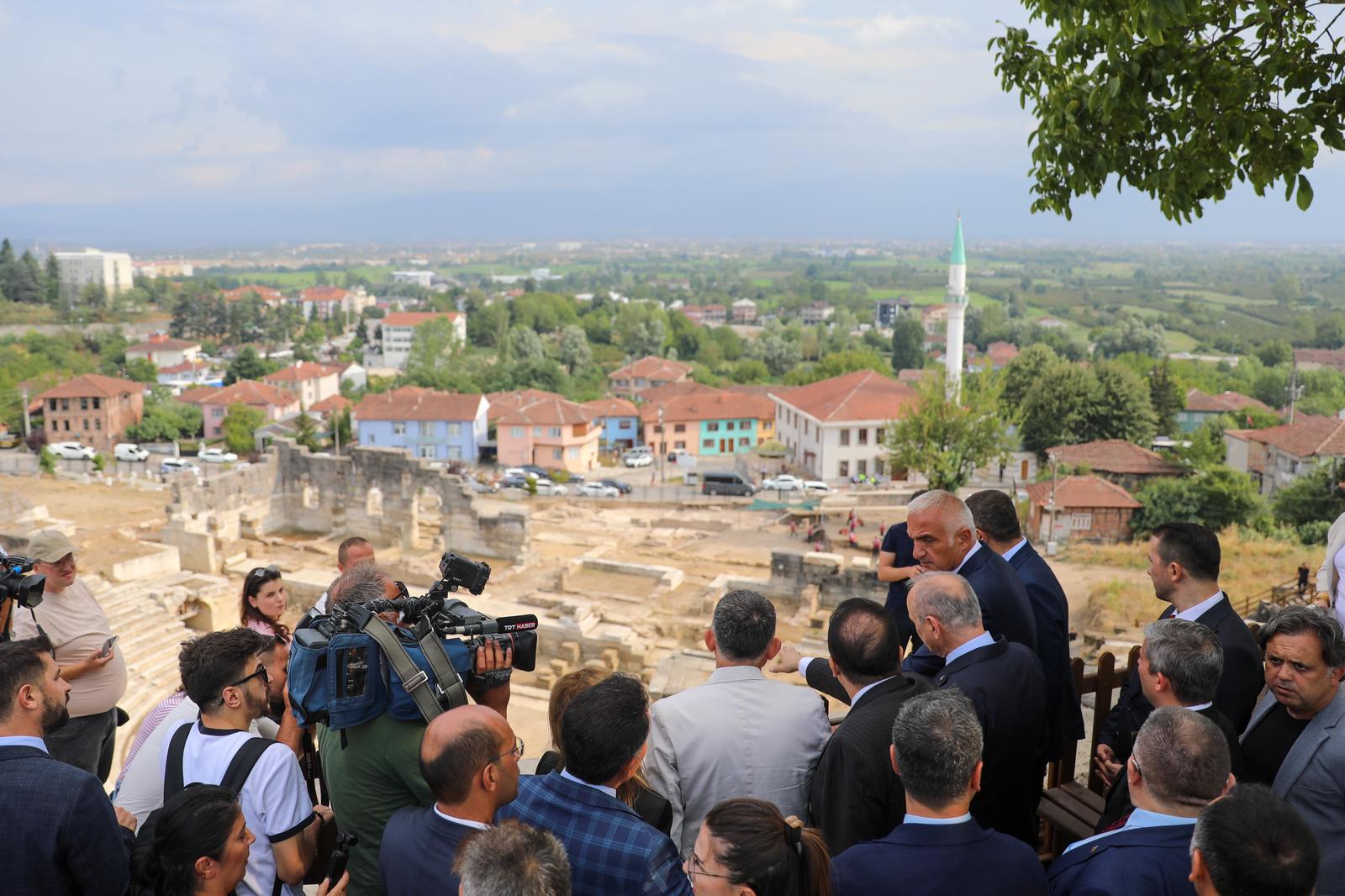 Kültür ve Turizm Bakanı Mehmet Nuri Ersoy bir dizi ziyaret için Düzce’ye geldi. İlk olarak Düzce Belediyesi’ni ziyaret eden Bakan Ersoy, Konuralp Antik Tiyatro alanını ziyaret ederek tamamlanmak üzere olan kazıların ardından yapılacak restorasyon çalışmalarının hızla tamamlanması ve iki yıl içinde etkinliklere ev sahipliği yapması konusunda talimat verdi.