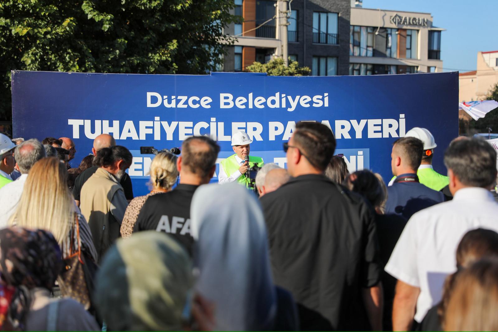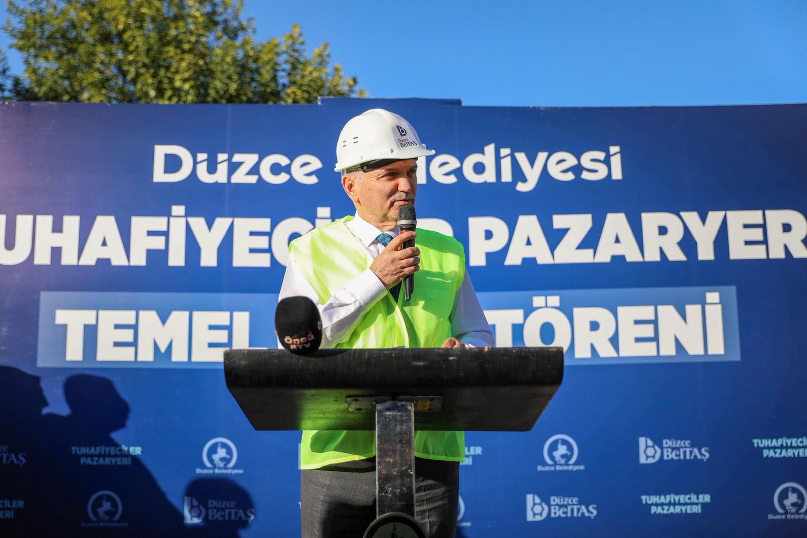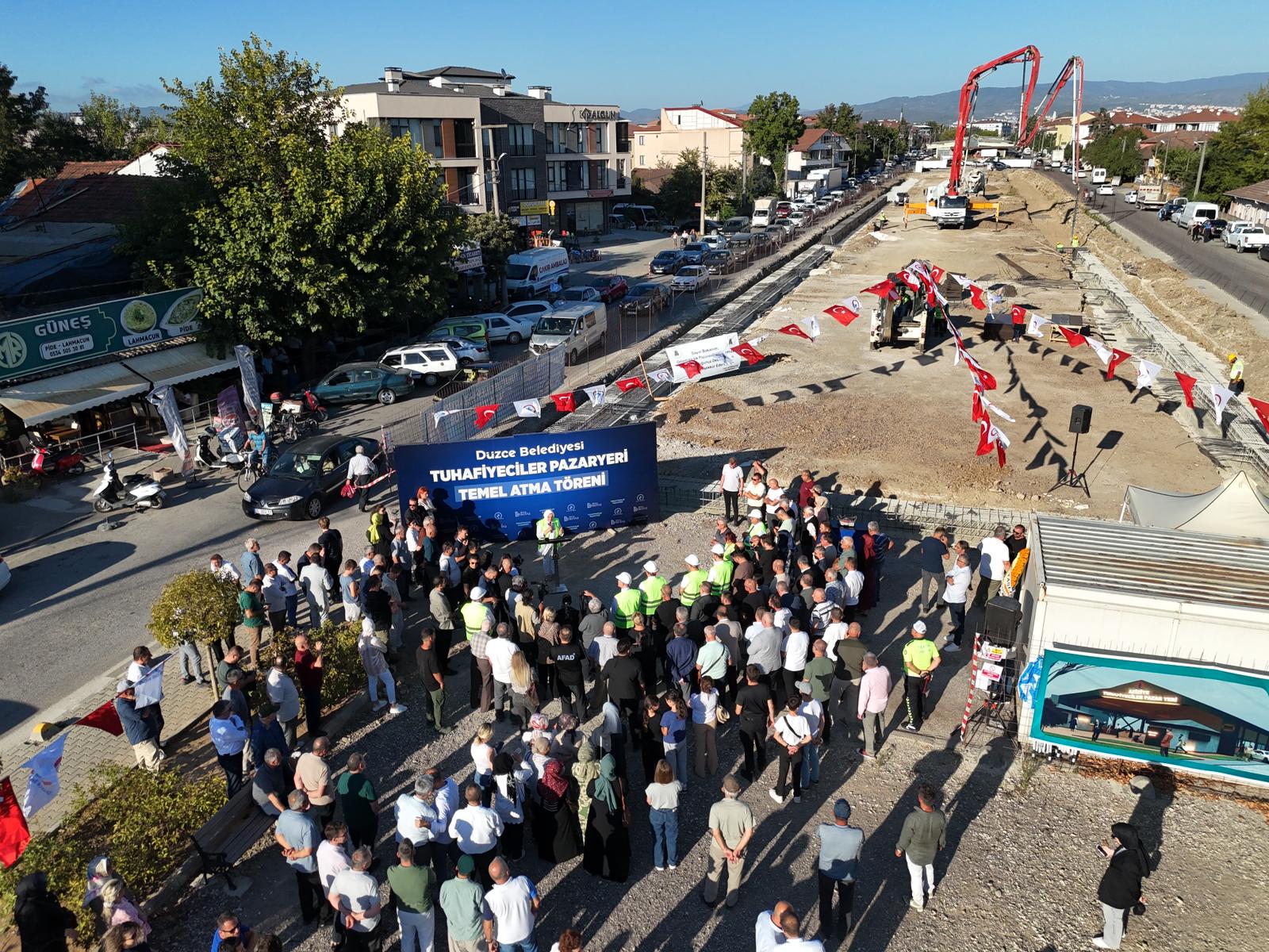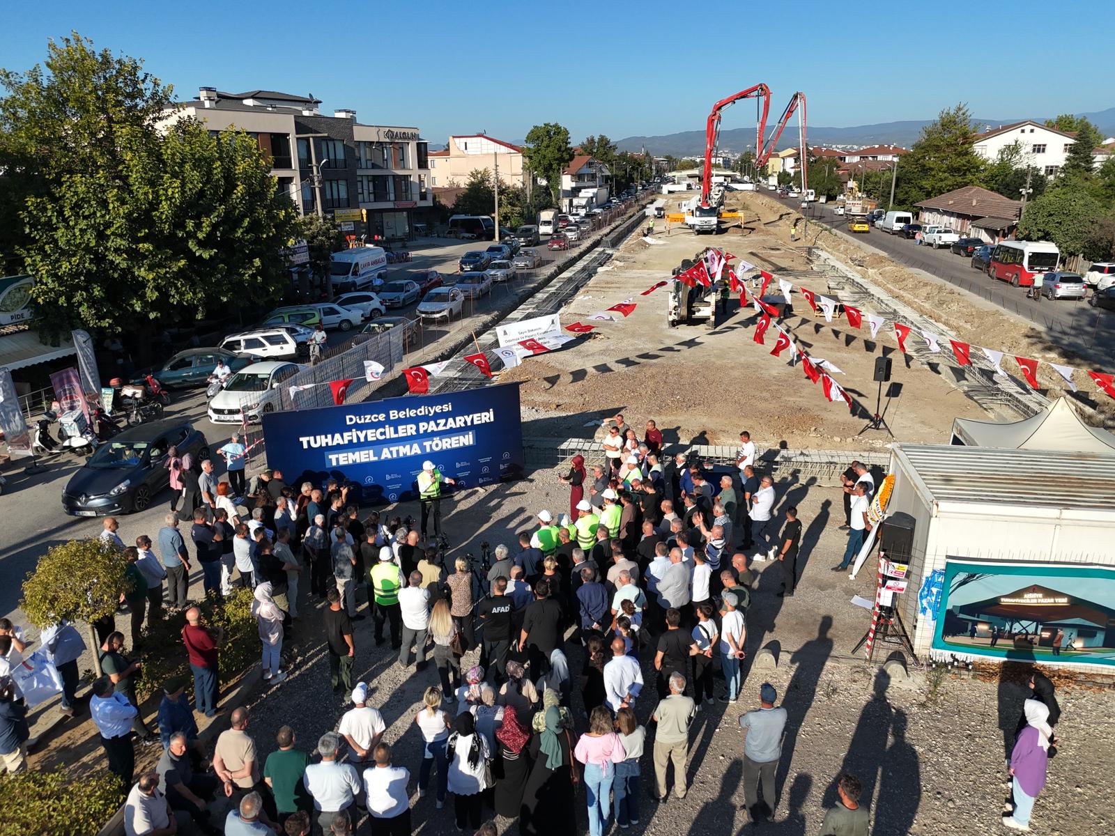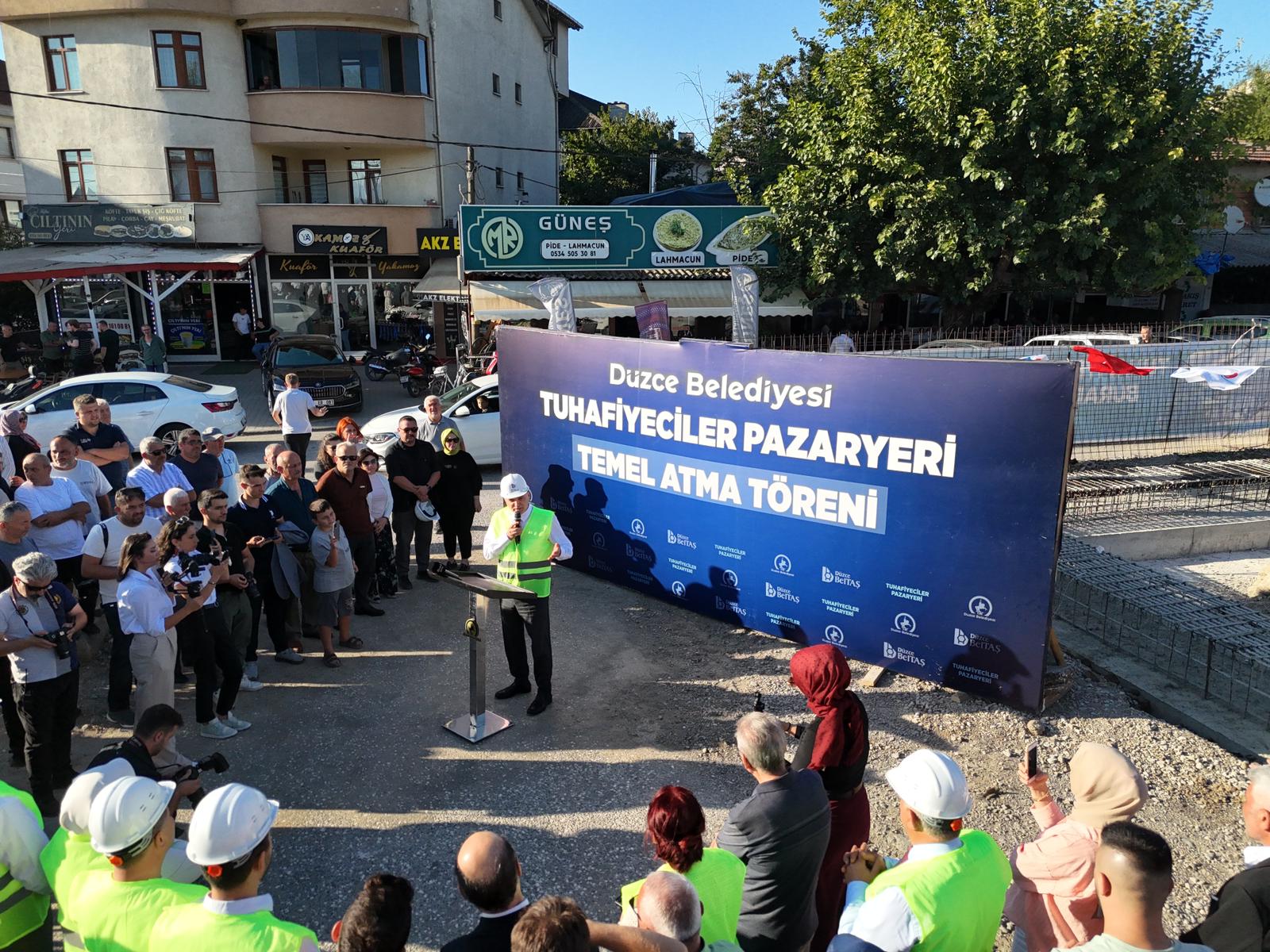 Düzce Belediyesi tarafından Aziziye Mahallesi’nde inşa edilecek olan Tuhafiyeciler Pazaryeri’nin temeli atıldı. Toplam 3.800 m² alana sahip, 138 tezgahlı ve aynı zamanda fuar alanı olarak kullanılacak modern yapının kısa sürede tamamlanması hedefleniyor.