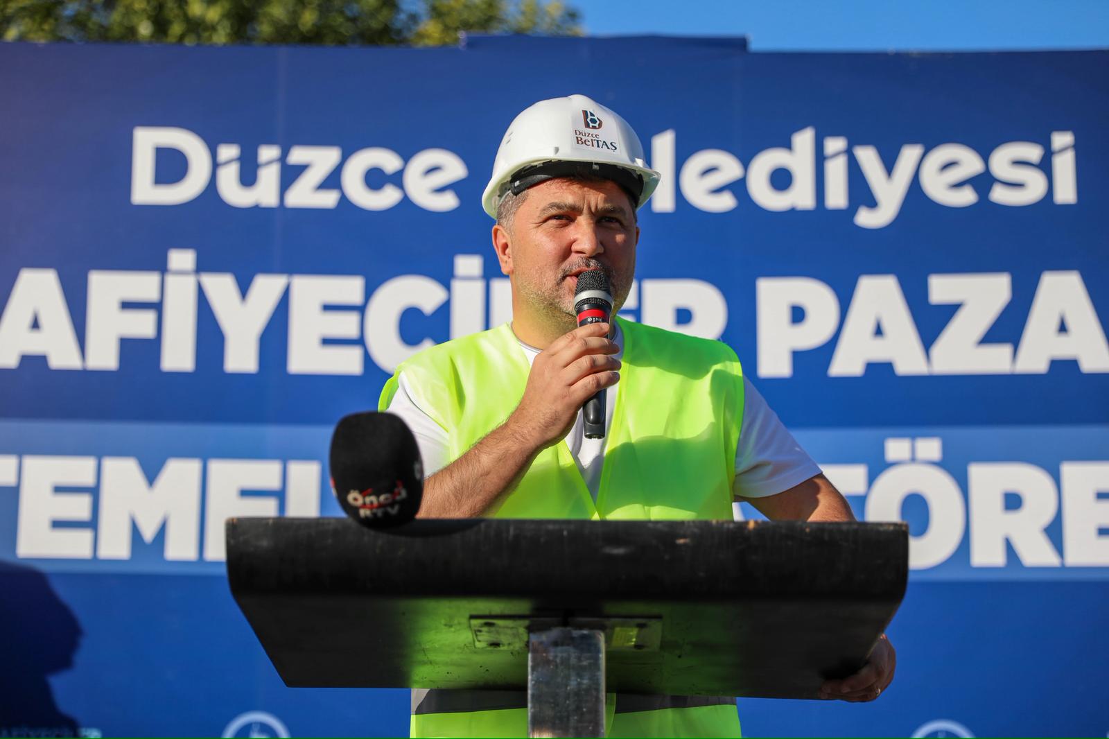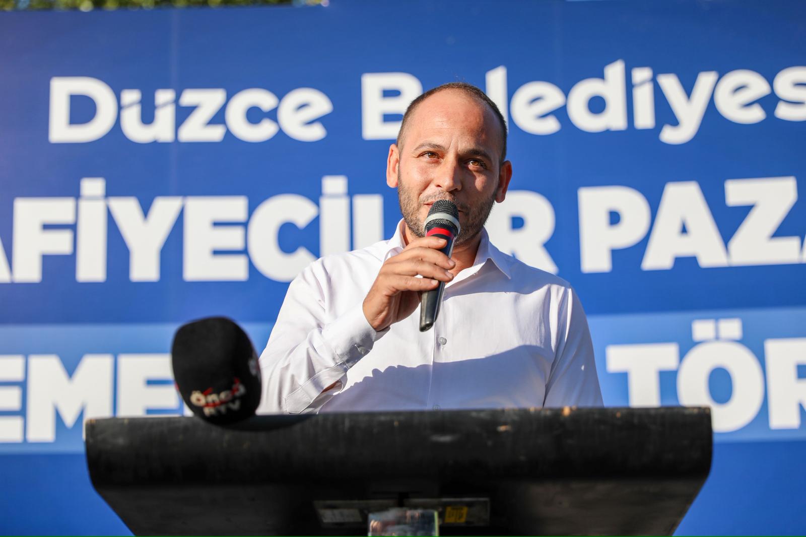 Düzce Seyyar Pazarcılar Esnaf Odası Başkanı Fatih Sarıbostan, temel atma töreninde yaptığı konuşmada duygularını şu sözlerle dile getirdi: “Biraz gecikmiş olabiliriz. Ancak tasarruf tedbirlerinin uygulandığı böyle sıkıntılı bir dönemde, bu kadar büyük bir yatırımı ancak sayın başkanımız yapabilirdi. Kendisine ve projede emeği geçen herkese çok teşekkür ediyorum. İnşallah bu pazaryerimiz, hem esnafımıza hem de Düzce halkına hayırlı ve uğurlu olur.”