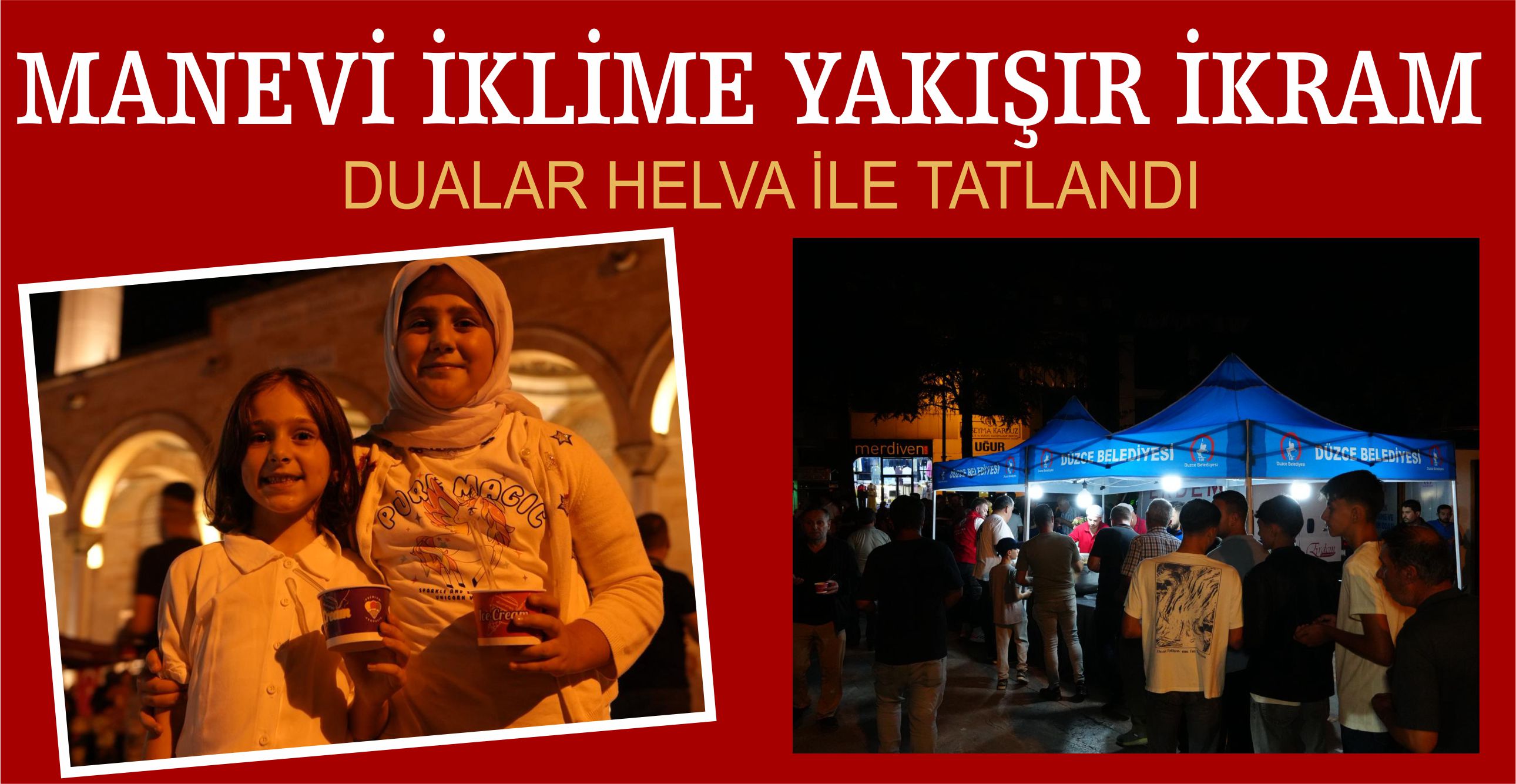Düzce Belediyesi,İslam alemi tarafından büyük bir huşu içinde kutlanan Mevlid Kandili dolayısıyla iki camide irmik helvası ikramında bulundu. Mübarek gece vesilesi ile düzenlenen etkinlikte, Cedidiye Camii ve Merkez Büyük Camii’nde yatsı namazı sonrası vatandaşlara helva dağıtıldı.