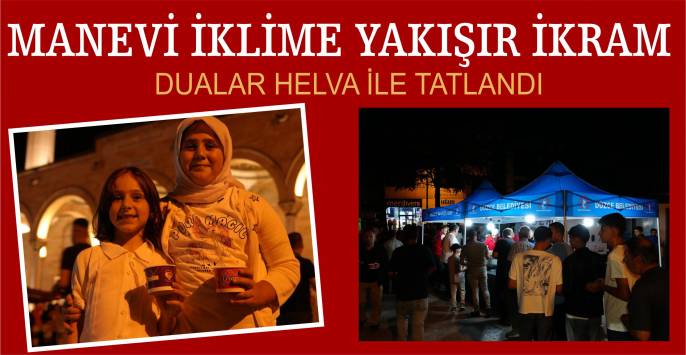 Düzce Belediyesi Mevlid Kandili dolayısıyla Düzcelilere ikramda bulundu. Sosyal Yardım İşleri Müdürlüğü ekipleri tarafından özenle hazırlanan irmik helvaları, kandil gecesinin manevi atmosferini paylaşmak amacıyla Cedidiye Camii ve Merkez Büyük Camii çıkışında cemaate ikram edildi.