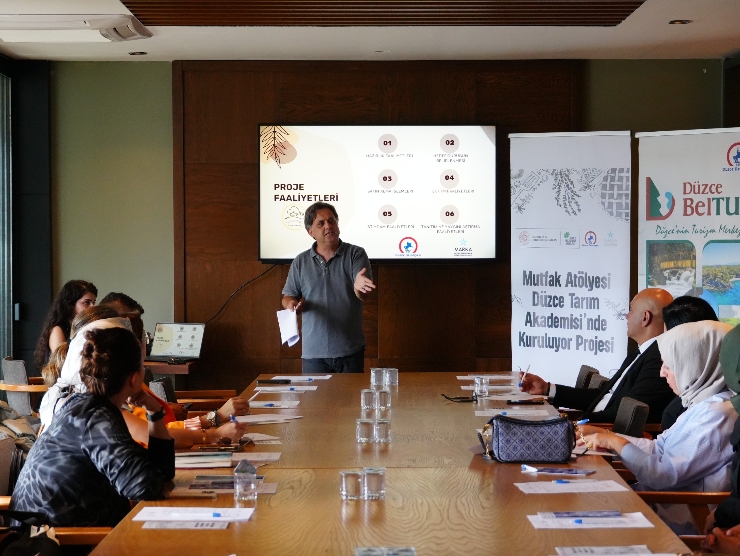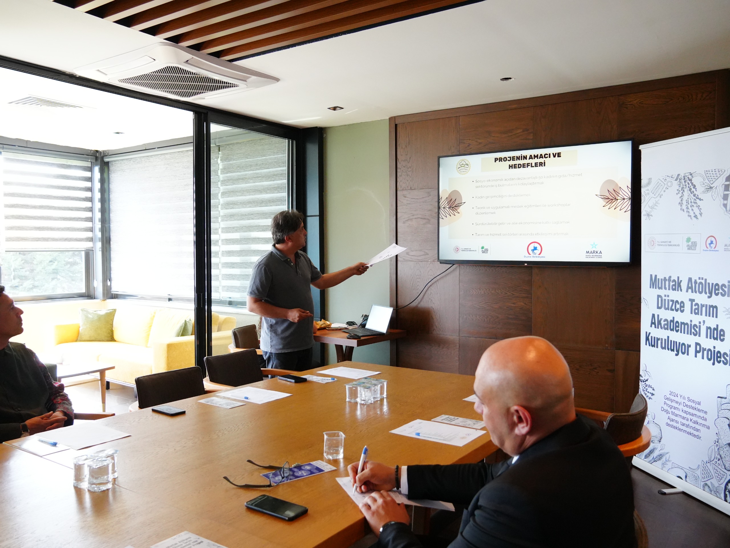 Düzce Belediyesi tarafından hazırlanan ve Doğu Marmara Kalkınma Ajansı (MARKA)’nın destekleriyle uygulama aşamasına geçen “Mutfak Atölyesi Tarım Akademisi’nde Kuruluyor Projesi” paydaş kurum temsilcileri toplantıda bir araya geldi. Sosyal ve ekonomik olarak dezavantajlı kadınların meslek öğrenmesi ve üretim ekonomisine katkı sağlamasını teşvik edecek proje sayesinde ilk etapta 50 kadın için profesyonel gastronomi eğitimi verilecek.