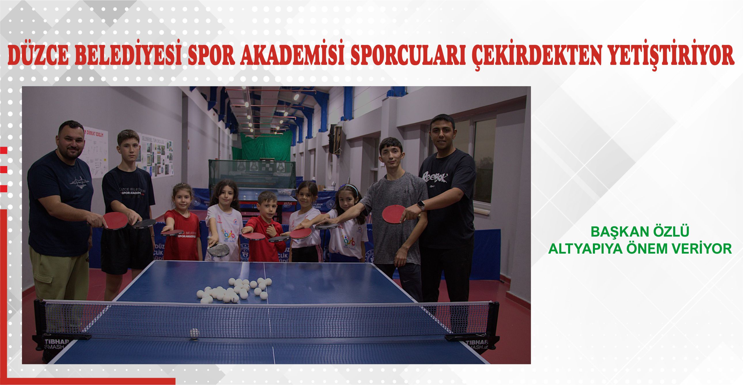 Düzce Belediyesi Spor Akademisi, Belediye Başkanı Dr. Faruk Özlü’nün teşvik ve desteğiyle her branşta sporcu yetiştirmeyi sürdürüyor. Minik sporcular Milli Takıma yükselmeyi hedeflerken, antrenörler ise Masa Tenisi 1. Ligi’nde mücadele etmeyi amaçlıyor.