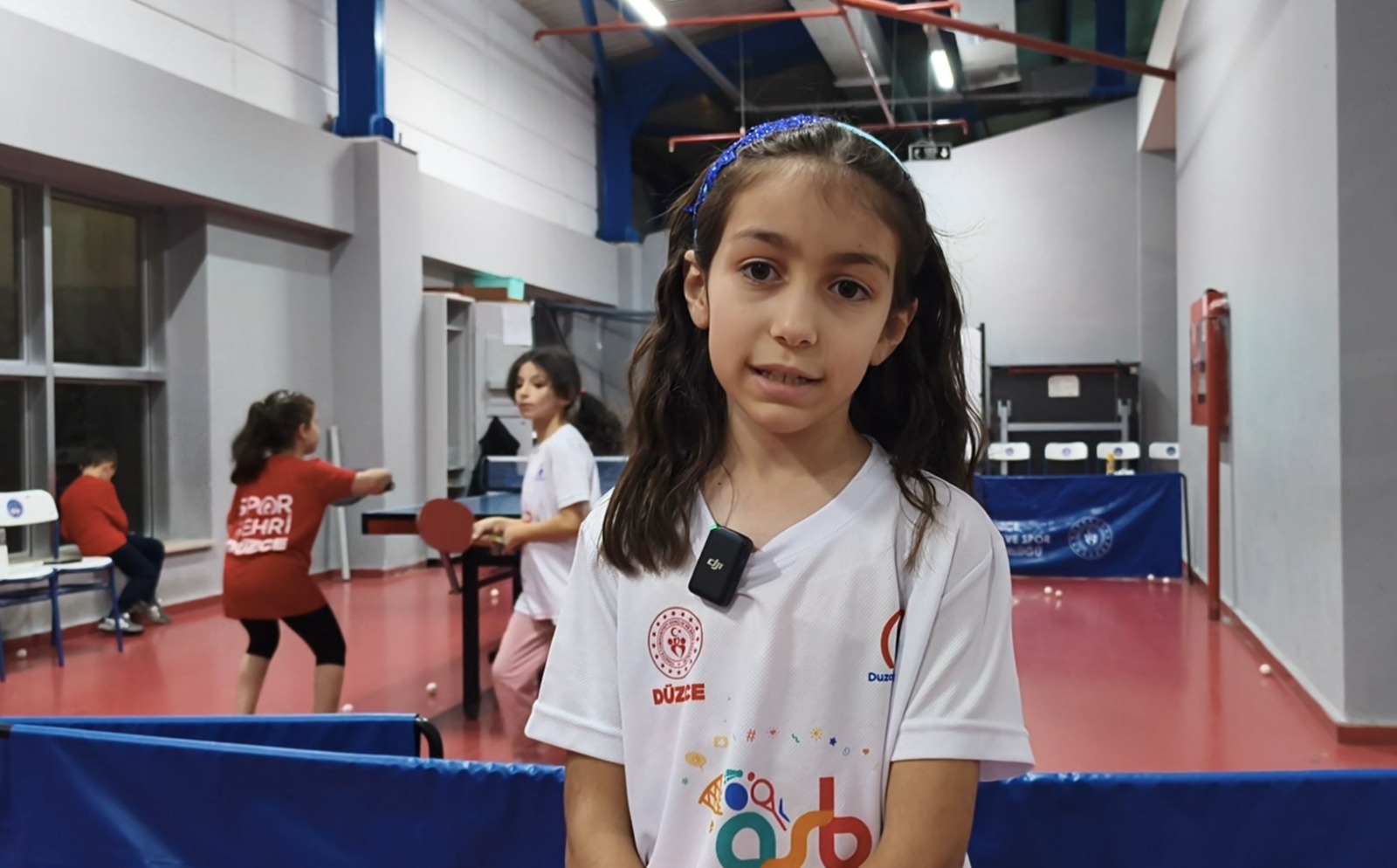 Masa Tenisi sporuna 6 yaşında merak salan ve 2 yıldır Düzce Belediyesi Spor Akademisi bünyesinde antrenmanlara katılan 8 yaşındaki Hüma Doğan ise hedefinin Milli Takıma yükselmek olduğunu belirterek, “Masa tenisini çok sevdim ve kursa gelmek istedim. 2 senedir masa tenisi oynuyorum. Bir kere Türkiye seçmelerine, bir kere de Düzce’de düzenlenen turnuvaya katıldım. Başarılı bir sporcu olup Milli Takım’a yükselmek istiyorum” ifadelerini kullandı.