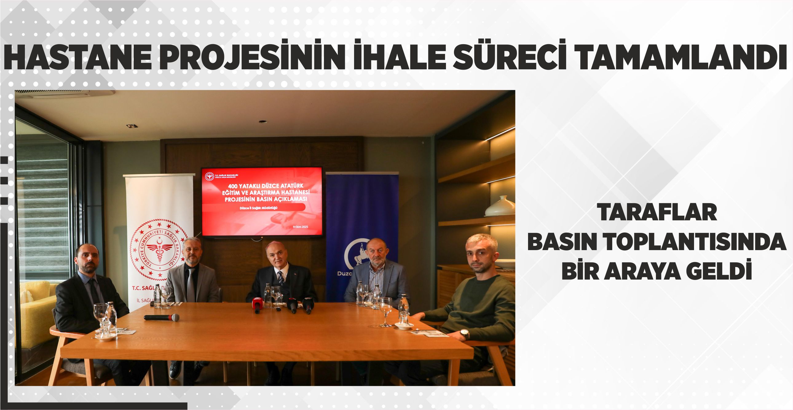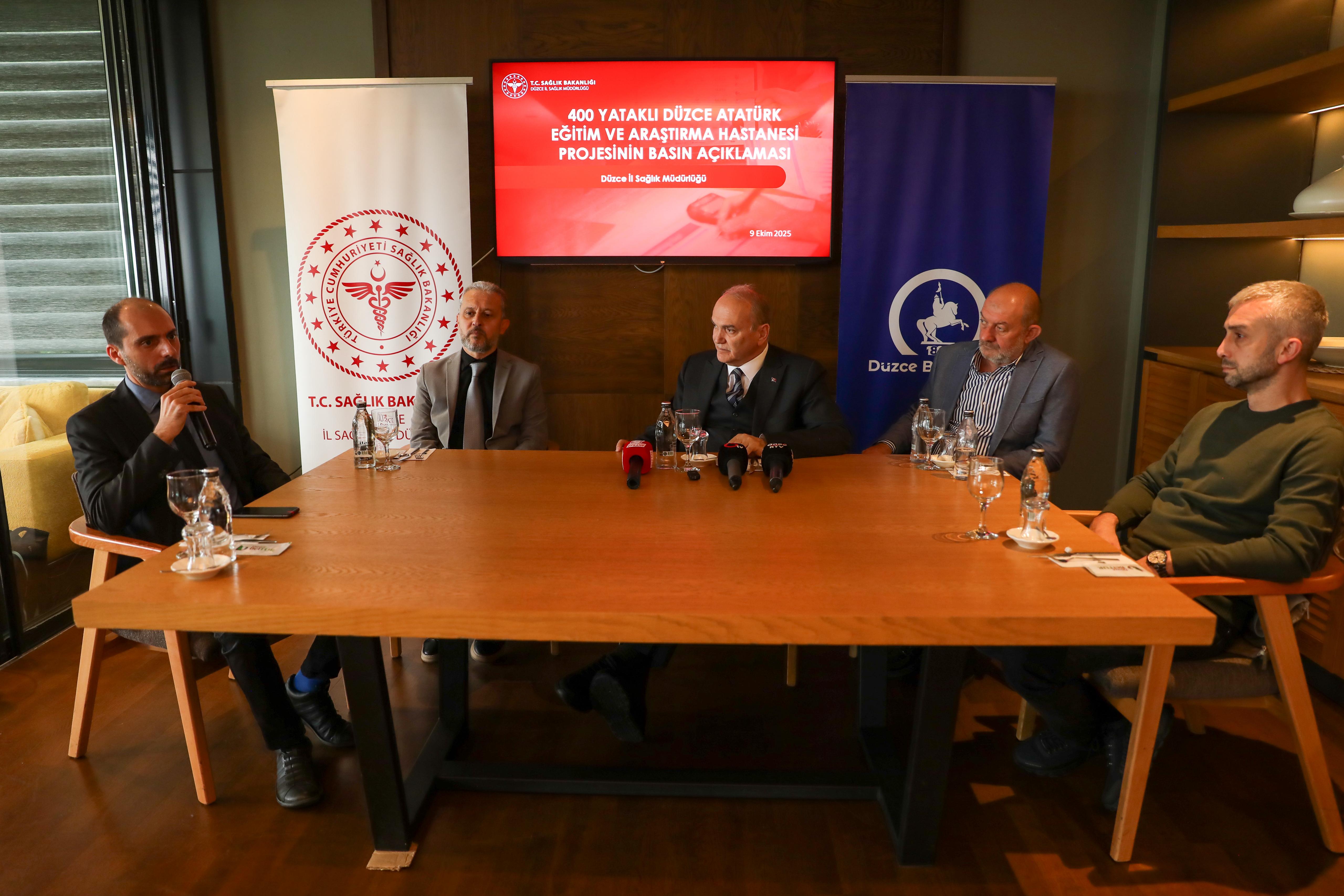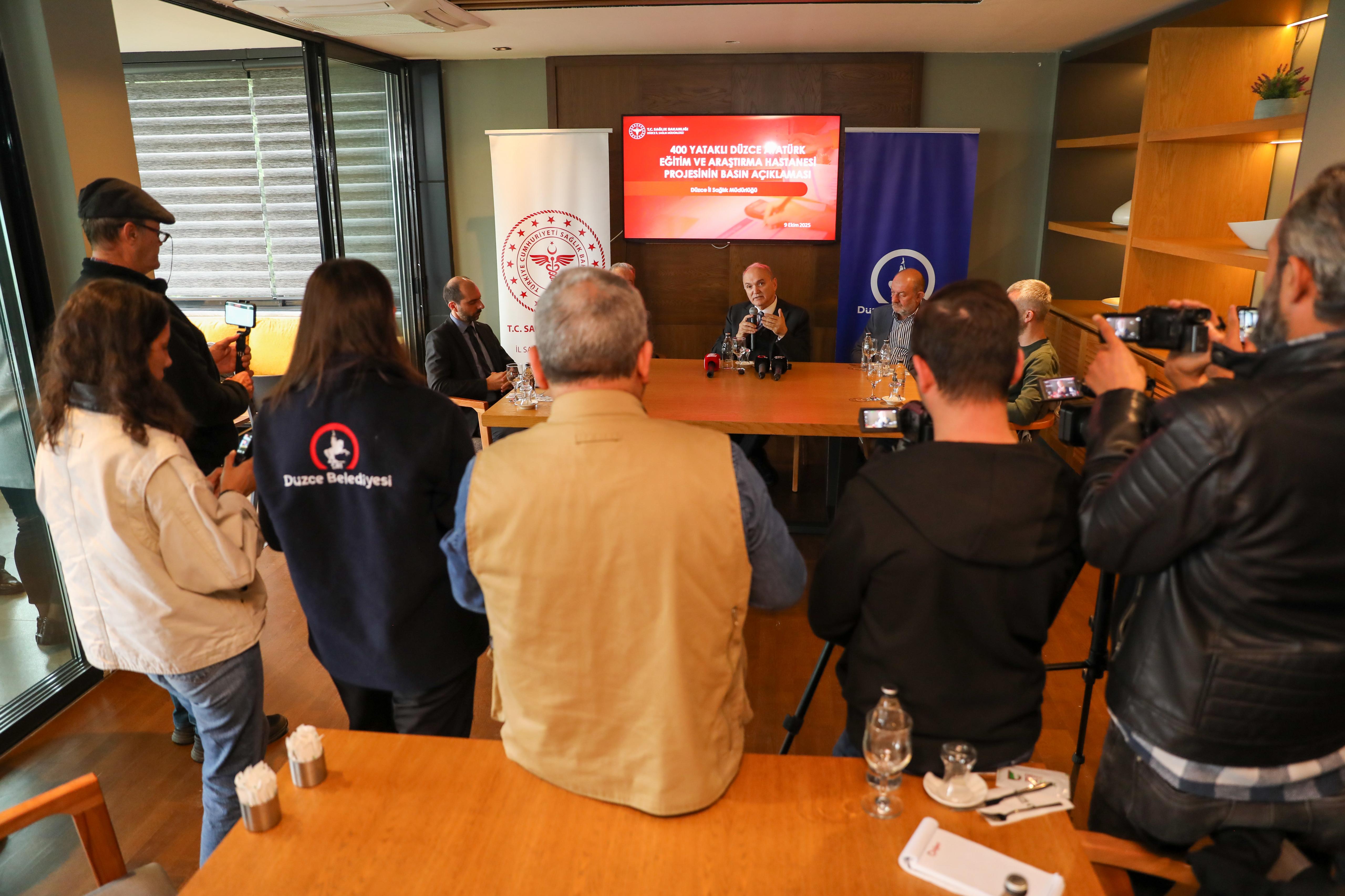 Düzce Belediye Başkanı Dr. Faruk Özlü, Düzce İl Sağlık Müdürü Dr. Yasin Yılmaz ve ihaleyi alan Studio Evren Başbuğ Mimarlık-Mühendislik şirketi sahibi Evren Başbuğ Düzce basını ile bir araya geldi. Aziziye mahallesindeki Atatürk Devlet Hastanesi yanında bulunan 37 dönüm arazi üzerine inşa edilmesi planlanan 400 yataklı Eğitim ve Araştırma Hastanesi’nin projesinin detayları kamuoyu ile paylaşıldı.