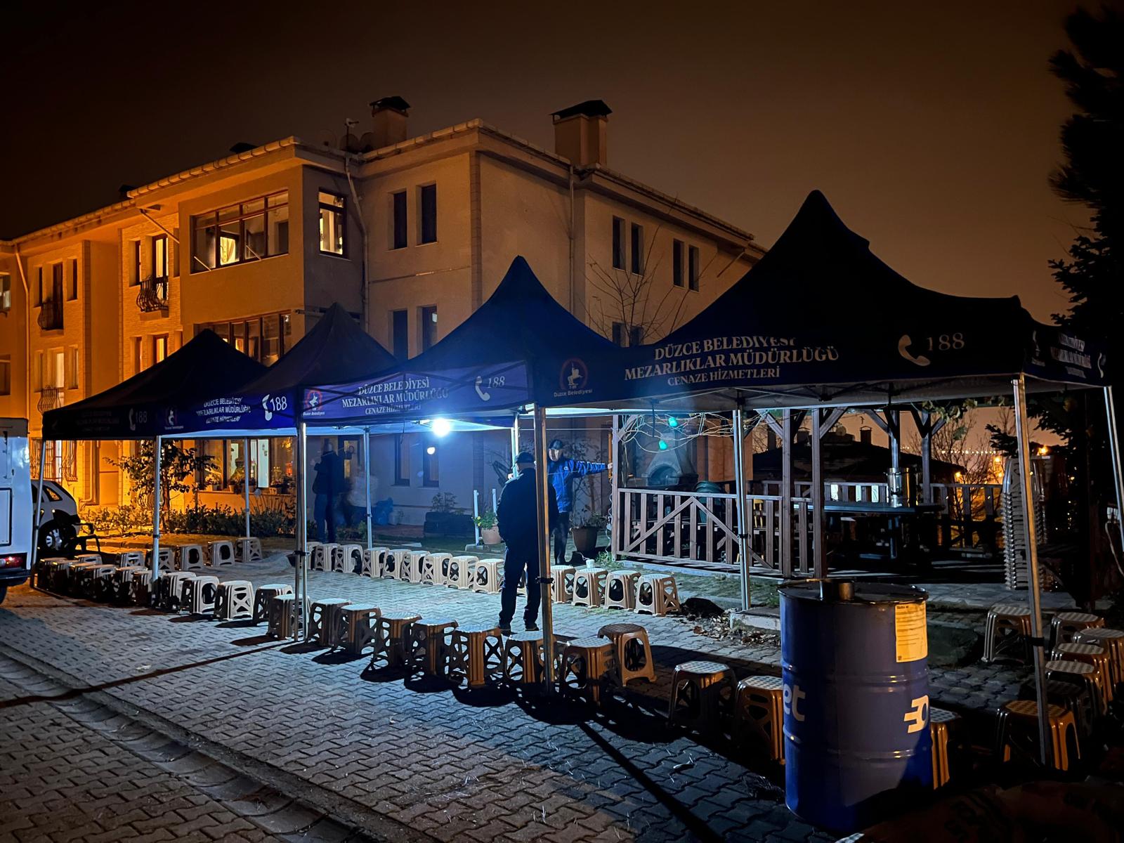 Hayatın her anında vatandaşlarla iç içe olarak hizmet üretmeyi sürdüren Düzce Belediyesi, Mezarlık Müdürlüğü çatısı altında cenaze ailesine çadır, tabure, çay kazanı taziye hizmetlerini de ücretsiz şekilde ulaştırdı. Şehir Mezarlığı alanında cenaze yakınlarının kullanımı için hayırsever iş insanlarının desteği ile Taziye hizmet binası yapılarak faaliyete başladı.