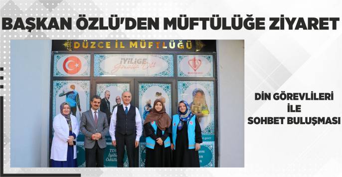 Düzce Belediye Başkanı Dr. Faruk Özlü, Camiler ve Din Görevlileri Haftası dolayısıyla Düzce İl Müftülüğü’nü ziyaret etti. İl Müftüsü Osman Aydın ve din görevlileri tarafından karşılanan Başkan Özlü, gerçekleştirilen buluşmada din görevlileriyle bir araya gelerek sohbet etti.