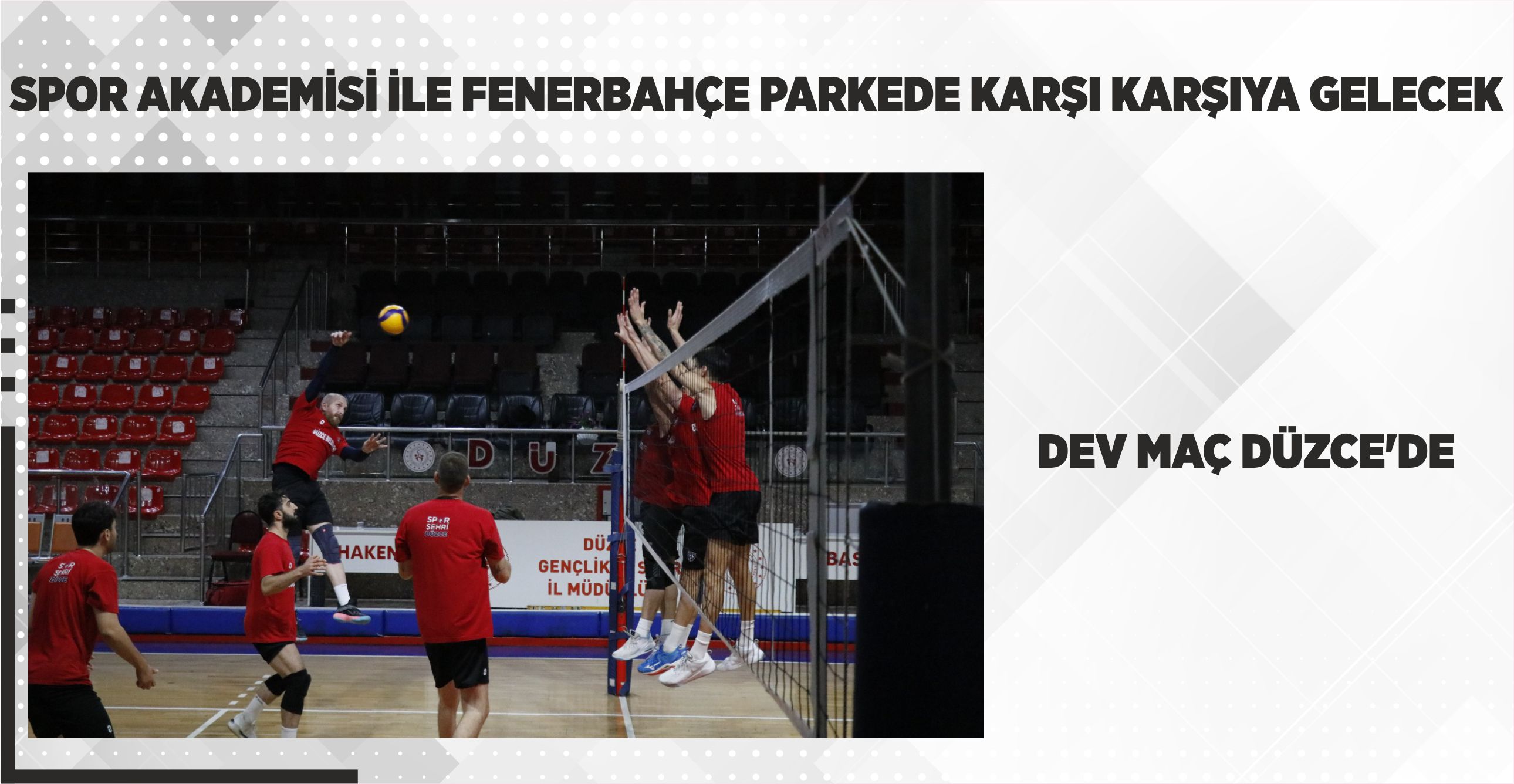 Düzce hafta sonu voleybolda dev maça ev sahipliği yapacak. Düzce Belediyesi Spor Akademisi Erkek Voleybol Takımı ile Fenerbahçe Spor Kulübü Voleybol Takımı 19 Ekim Pazar günü saat 14.00’da, 18 Temmuz Spor Salonu’nda karşı karşıya gelecek.