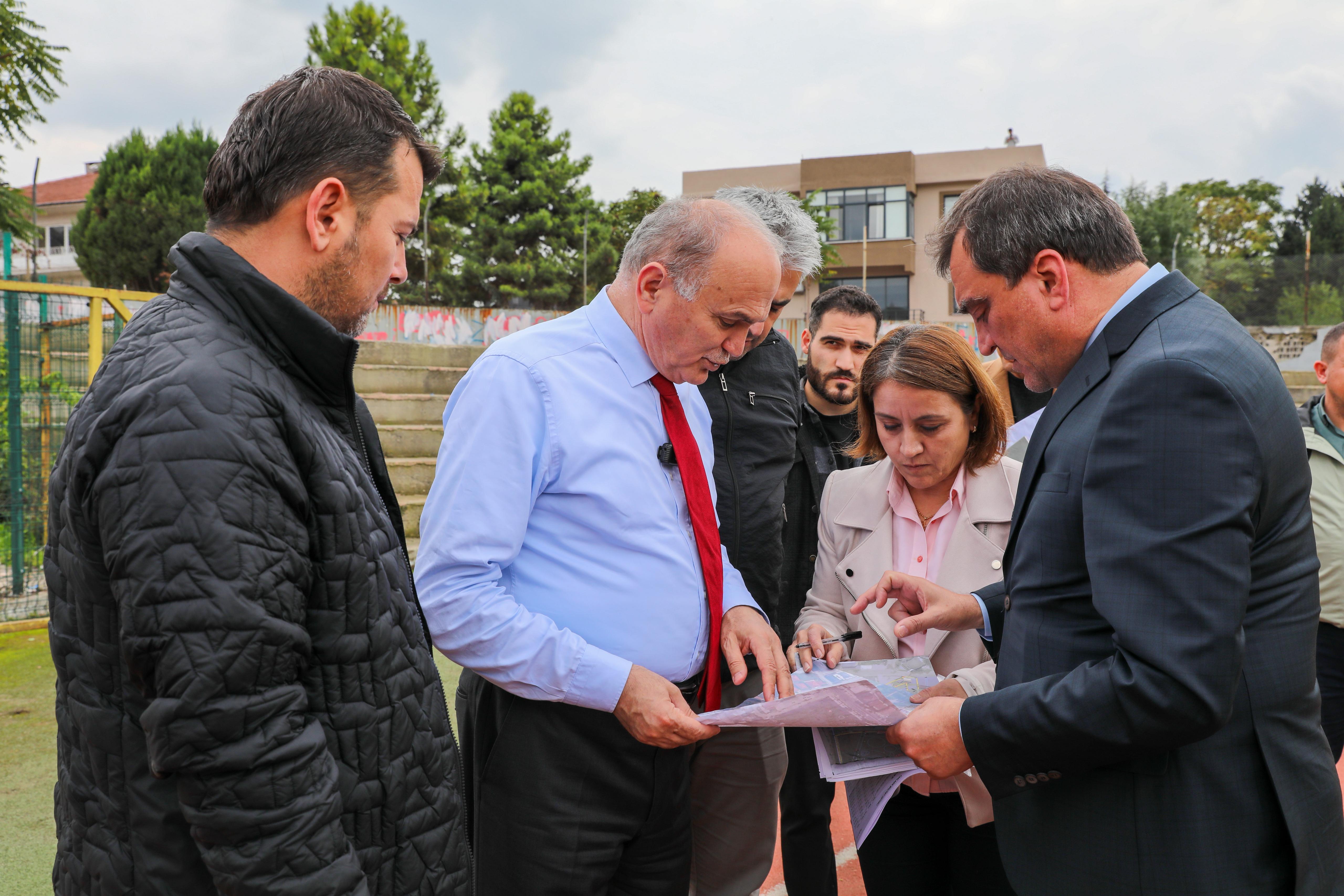 Düzce Belediye Başkanı Dr. Faruk Özlü, birkaç gün içinde çalışmaların başlayacağı Millet Bahçesi 2. Etap alanı üzerinde kurmayları ile buluştu. Eski stadyum alanı çim güçlendirme, çevre aydınlatmaları ve tadilat yapılacak alanların konuşulduğu incelemede Başkan Özlü, ileri dönüşüm anlayışı çerçevesinde kullanılabilir donatılar ile alanların korunacağını belirtti.