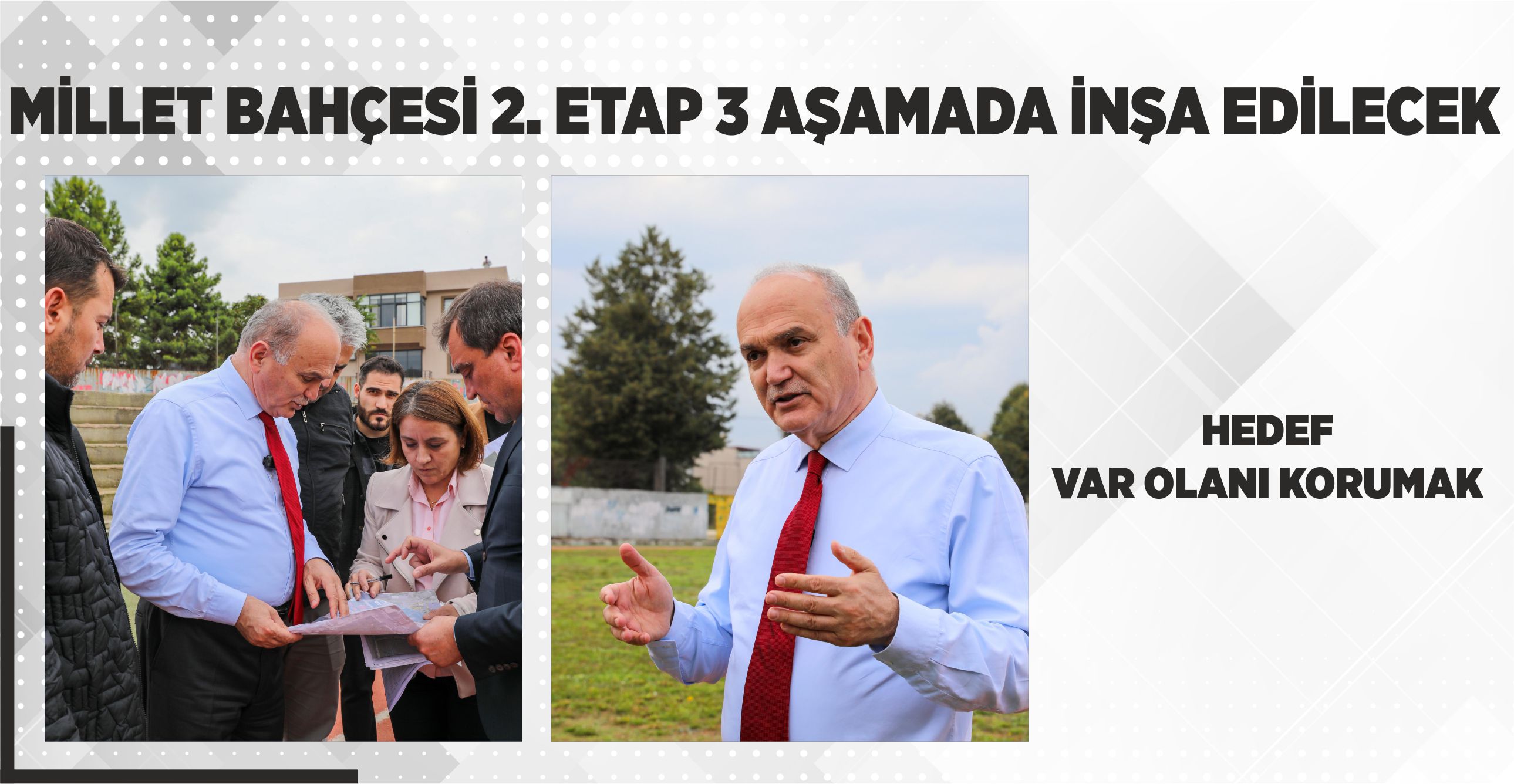 Stadyumun güney kısmında yer alan beton tribünlerin çim alana bakması açısından bir amfi görevi görmesi, böylece sahne sanatlarının icrasında kullanılacak bir seyir alanı olarak değerlendirilmesi de toplantıda gündeme geldi. İlk aşamanın uygulanmasına çevrede bulunan atıl yapıların kaldırılması ile başlanacağını söyleyen Başkan Özlü yaptığı açıklamada şu ifadeleri kullandı: “Buradaki proje alanının ilk aşamasında yapacağımız kısımları çeviriyoruz. Çimlendirme konusu çok önemli ve bol miktarda otopark alanları belirleyelim. Şu an eski şehir stadının olduğu yerdeyiz. Millet Bahçesi 2’ye başlıyoruz. Bu projeyi 3 etapta gerçekleştireceğiz. Birinci etabın olduğu yer stadyumun olduğu yer. Futbol sahasının olduğu yeşil alanı bozmayacağız. Etrafını ağaçlandıracağız ve aydınlatacağız. Yürüme yollarını yenileyeceğiz. Dolayısıyla burada insanların gece gündüz yürüyüş yapacağı bir alan inşa edeceğiz. Bu projenin tamamı yaklaşık 52 dönüm arazi üzerinde olacak. Artık çalışmalara başlıyoruz. Düzce’mize hayırlı olsun.”