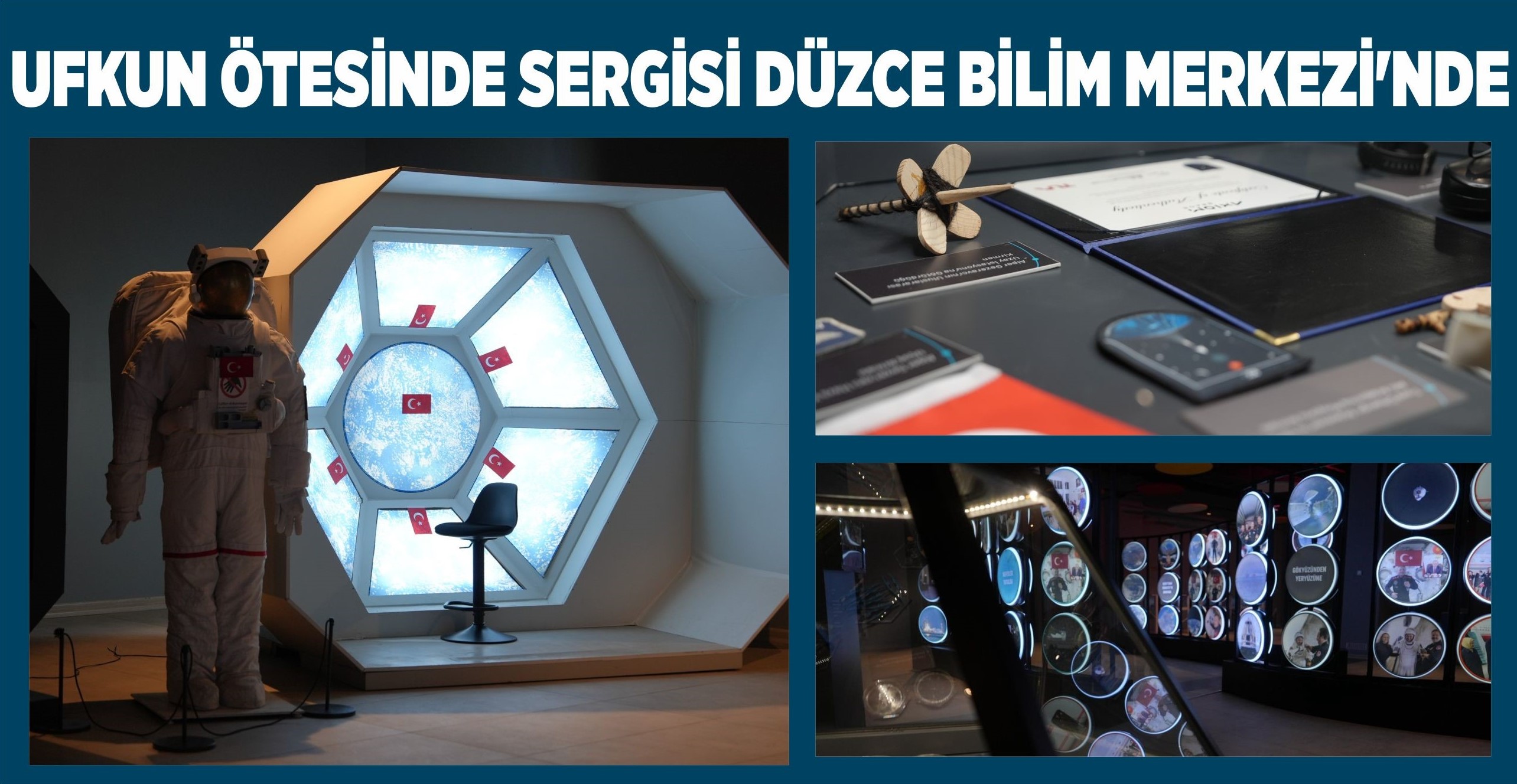 Düzce Bilim Merkezi, Türkiye’nin uzay serüvenini anlatan “Ufkun Ötesinde” temalı sergiye ev sahipliği yapıyor. Uzay araçları modelleri, astronot kıyafetleri, uzay fotoğrafları ve videoları gibi birçok ilgi çekici materyalin yer aldığı; ayrıca sanal gerçeklik uygulamalarıyla uzayda yolculuk deneyimi yaşatan sergi ziyaretçilerini bekliyor.