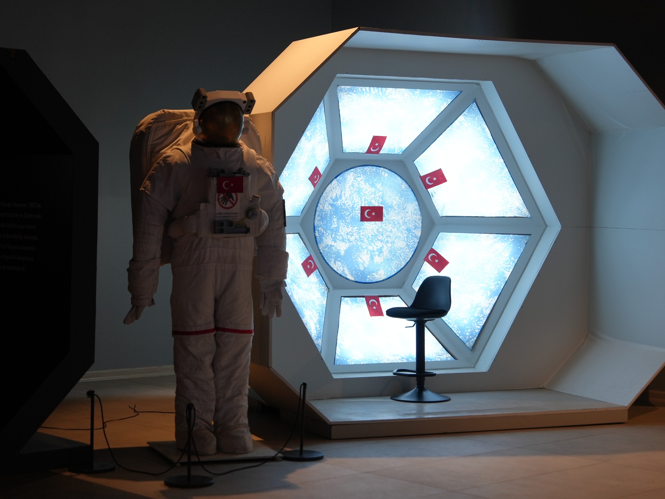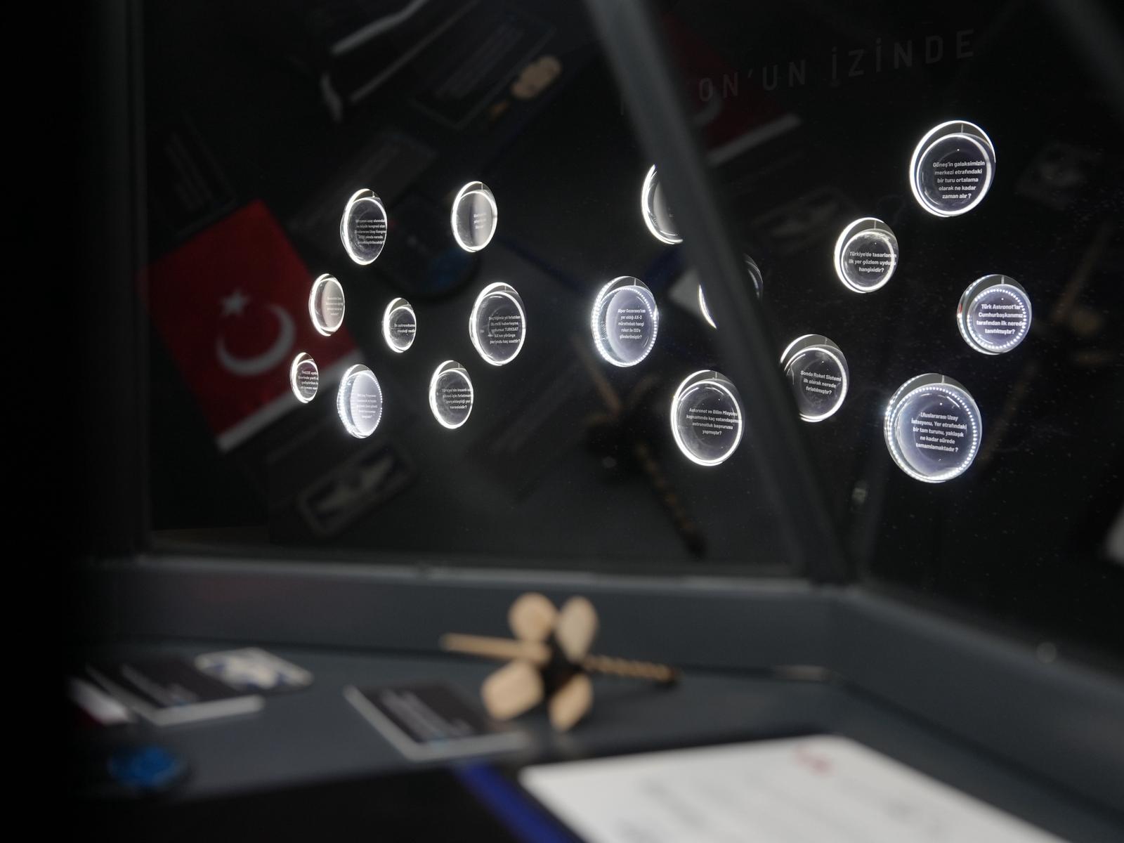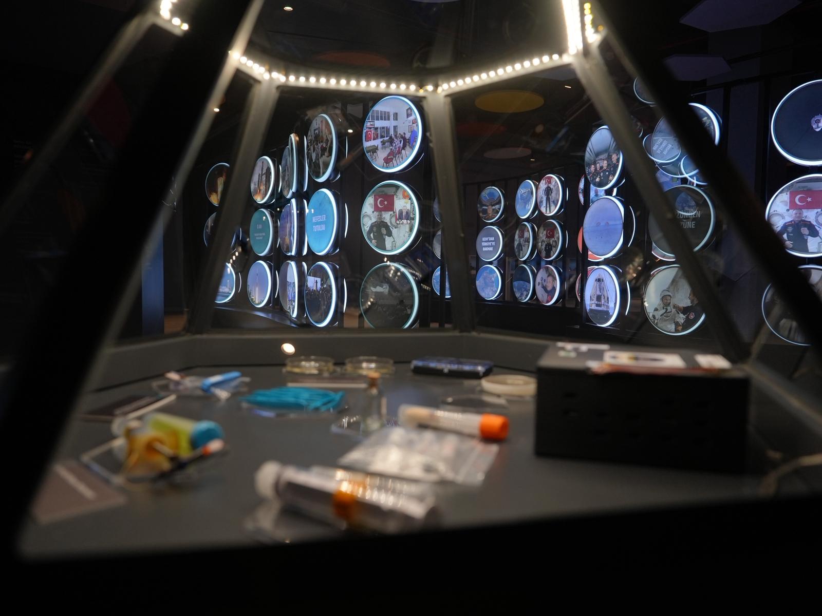 Serginin “Türk Yıldızları” köşesinde ise Türkiye'nin ilk astronotları Alper Gezeravcı ve Tuva Cihangir Atasever’in uzay yolculuklarında kullandıkları kişisel eşyalar ile özgeçmişleri sergileniyor.