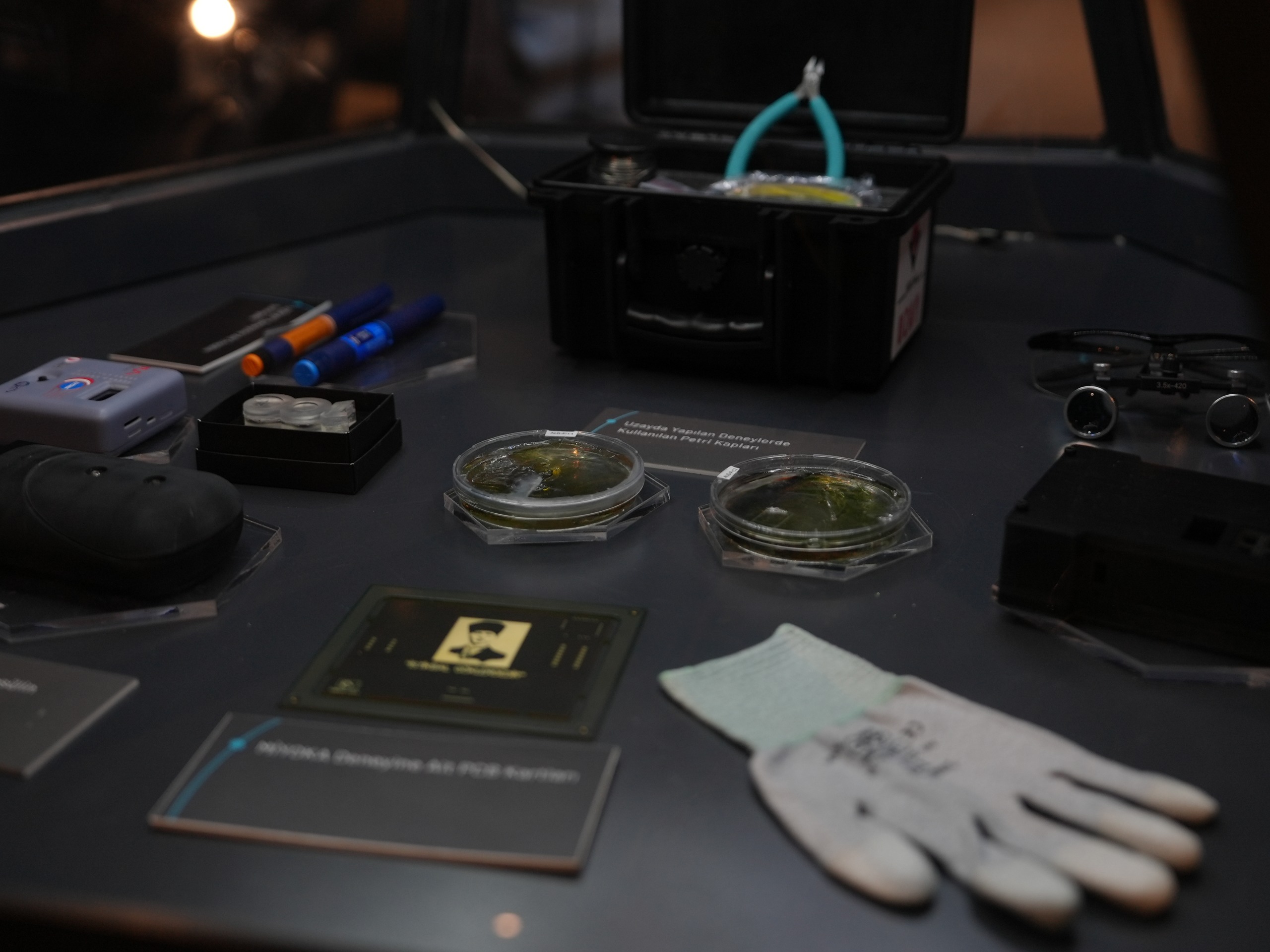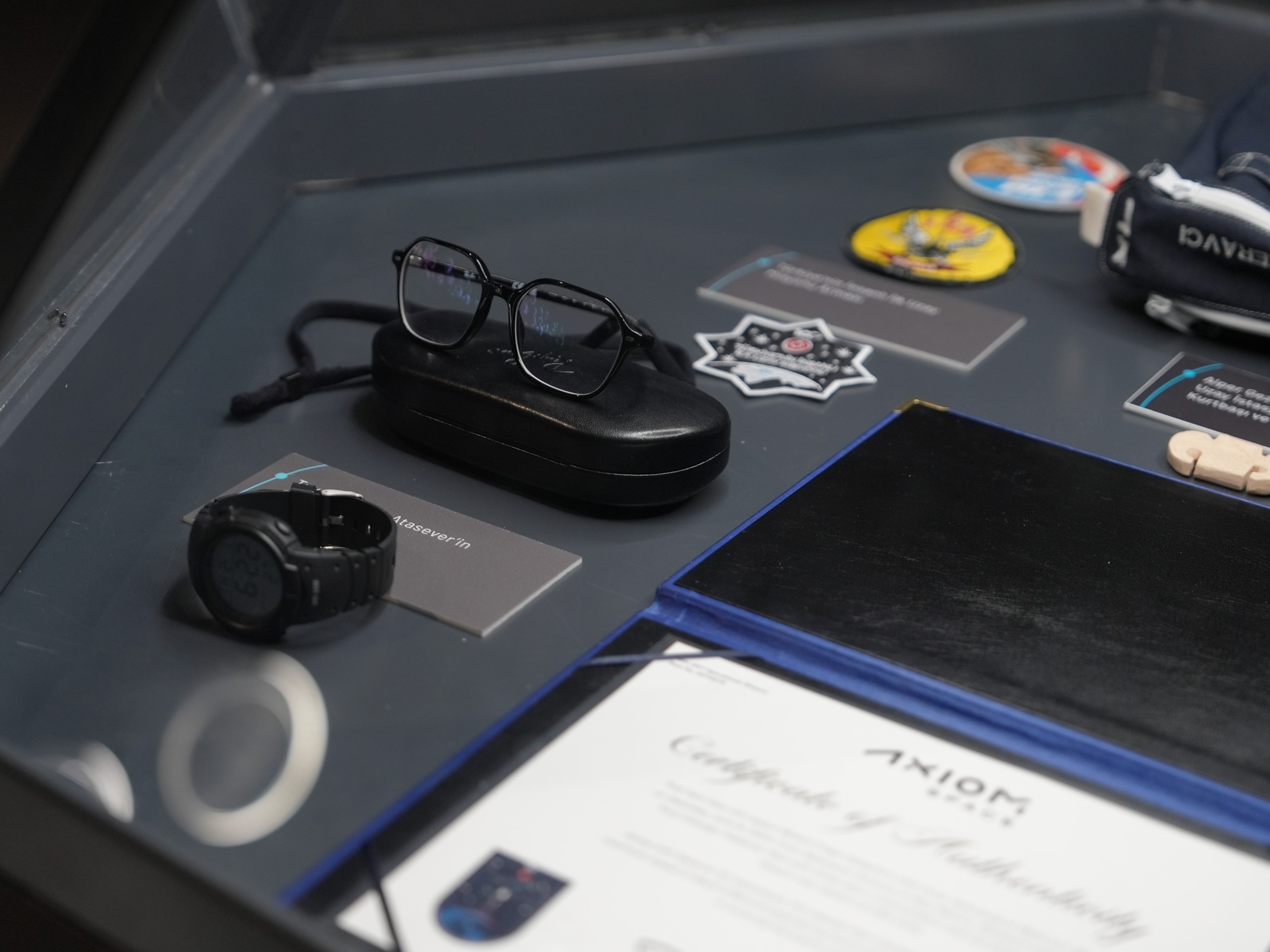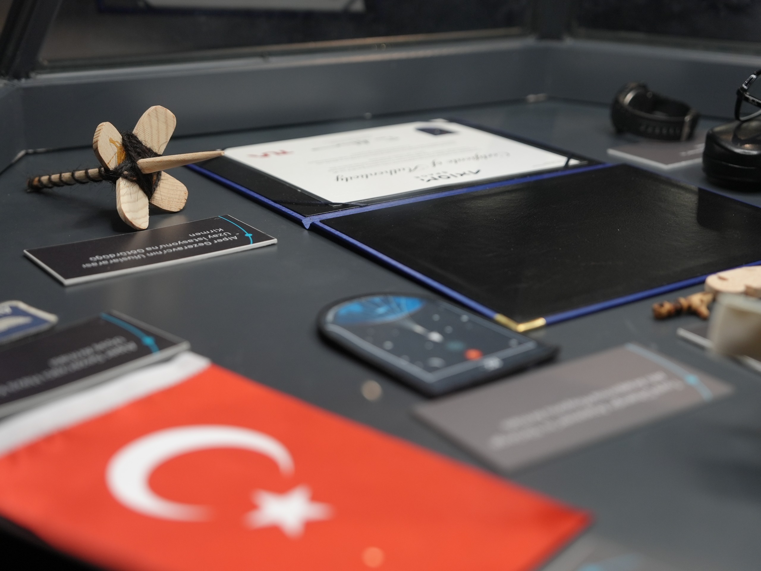 Serginin “Türk Yıldızları” köşesinde ise Türkiye'nin ilk astronotları Alper Gezeravcı ve Tuva Cihangir Atasever’in uzay yolculuklarında kullandıkları kişisel eşyalar ile özgeçmişleri sergileniyor.