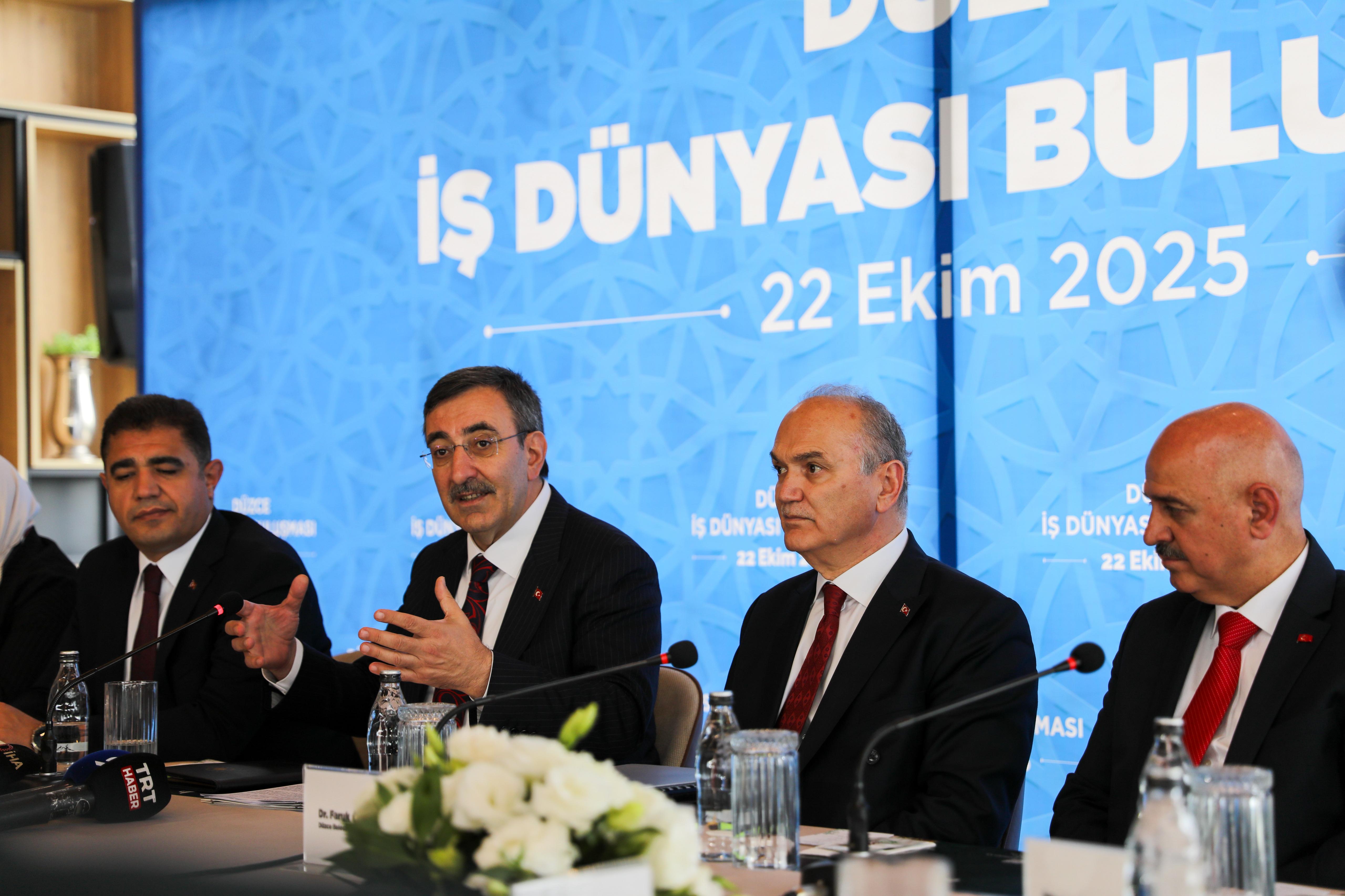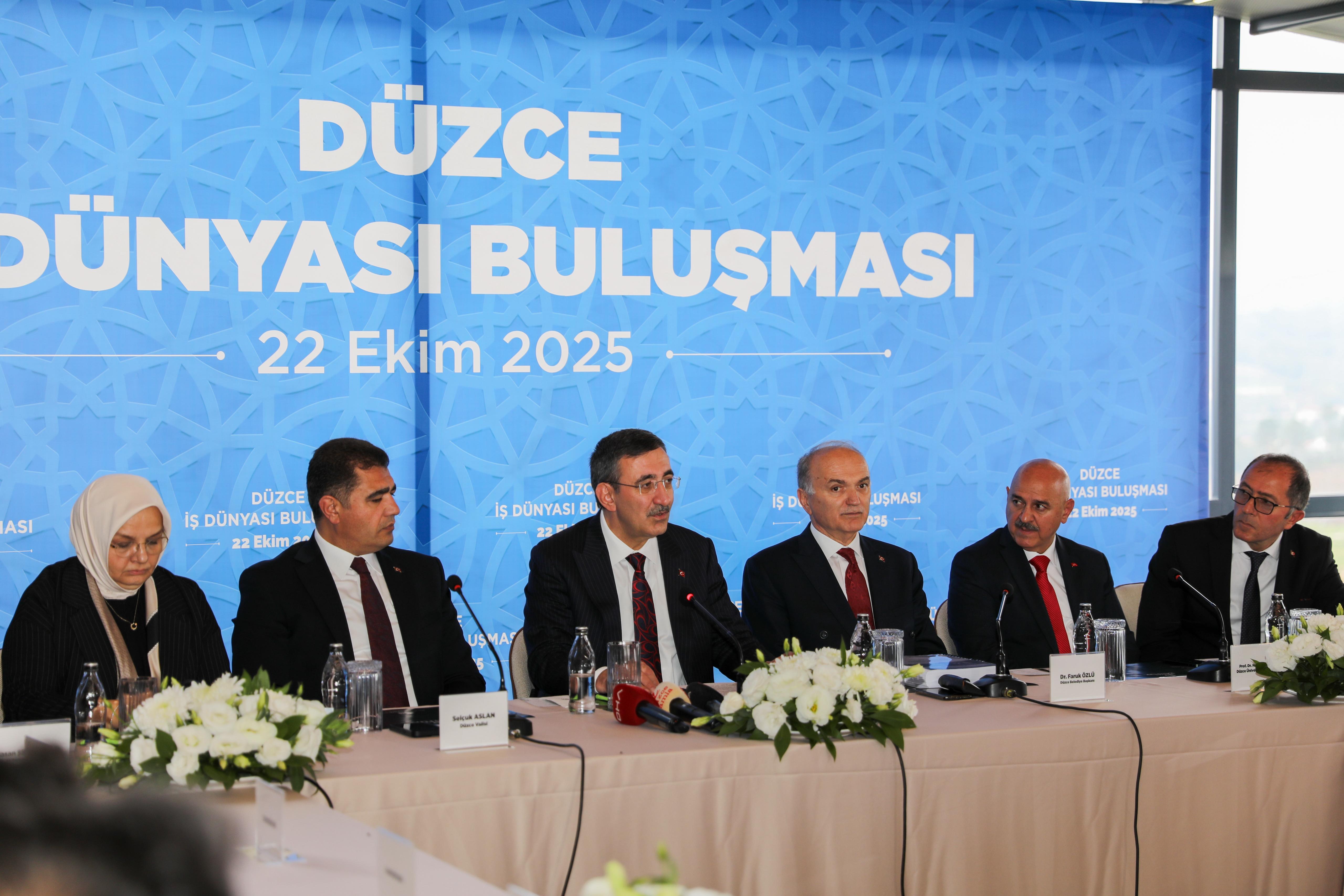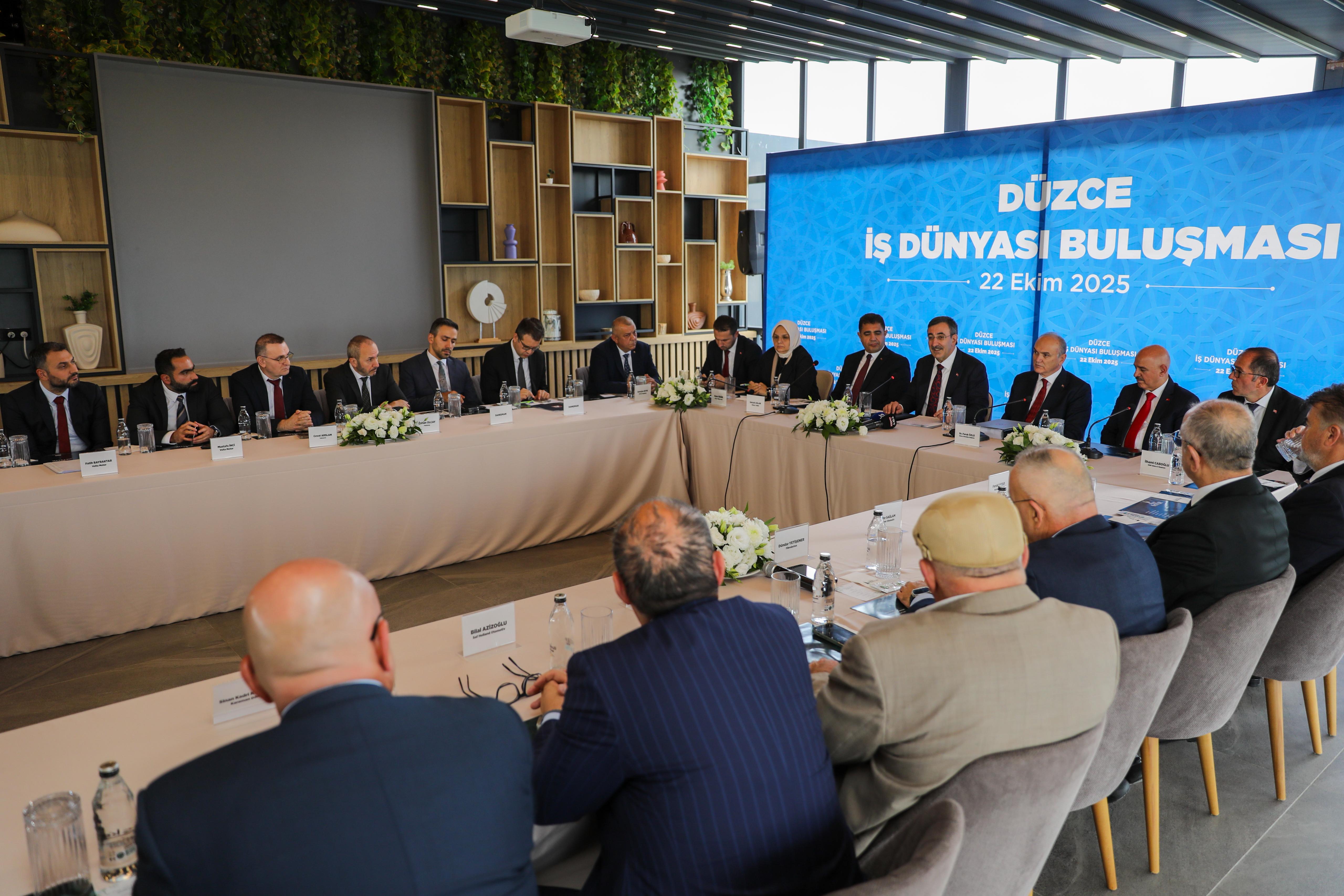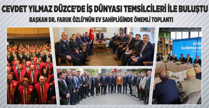 Cumhurbaşkanı Recep Tayyip Erdoğan’ın Yardımcısı Cevdet Yılmaz, Düzce ziyaretinde birçok kurum ve kuruluş temsilcilerinin hazır bulunduğu program kapsamında önce valiliği ardından AK Parti Düzce İl Başkanlığı’nı ve Düzce Üniversitesi’ni ziyaret etti. Cumhurbaşkanı Yardımcısı Yılmaz daha sonra Düzce Belediye Başkanı Dr. Faruk Özlü’nün ev sahipliğinde Düzce’de yatırımları bulunan ve vergi sıralamasına giren büyük şirketlerin sahipleri ile Mutfak Sanatları Merkezi’nde düzenlenen “İş Dünyası Buluşması”na katıldı.