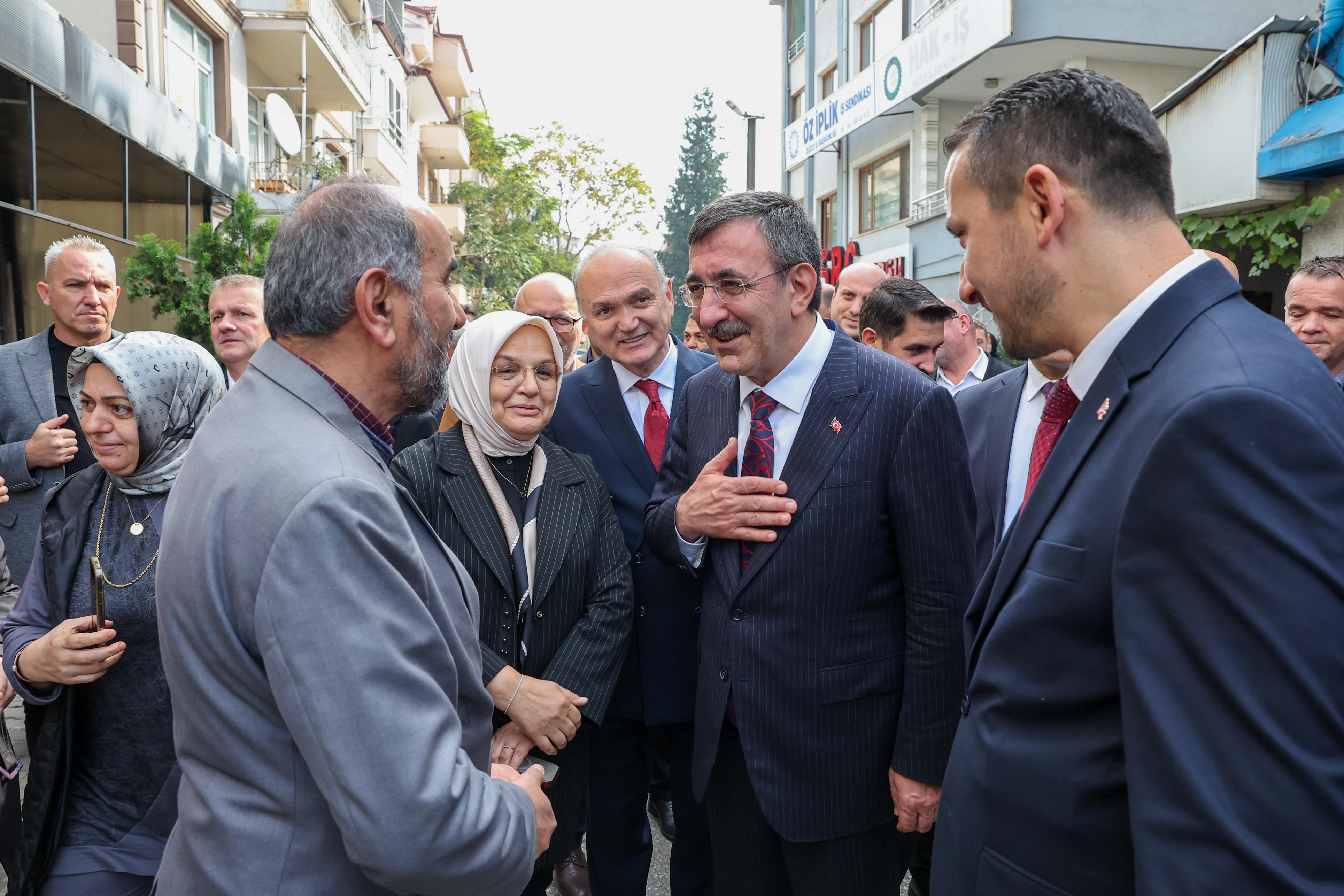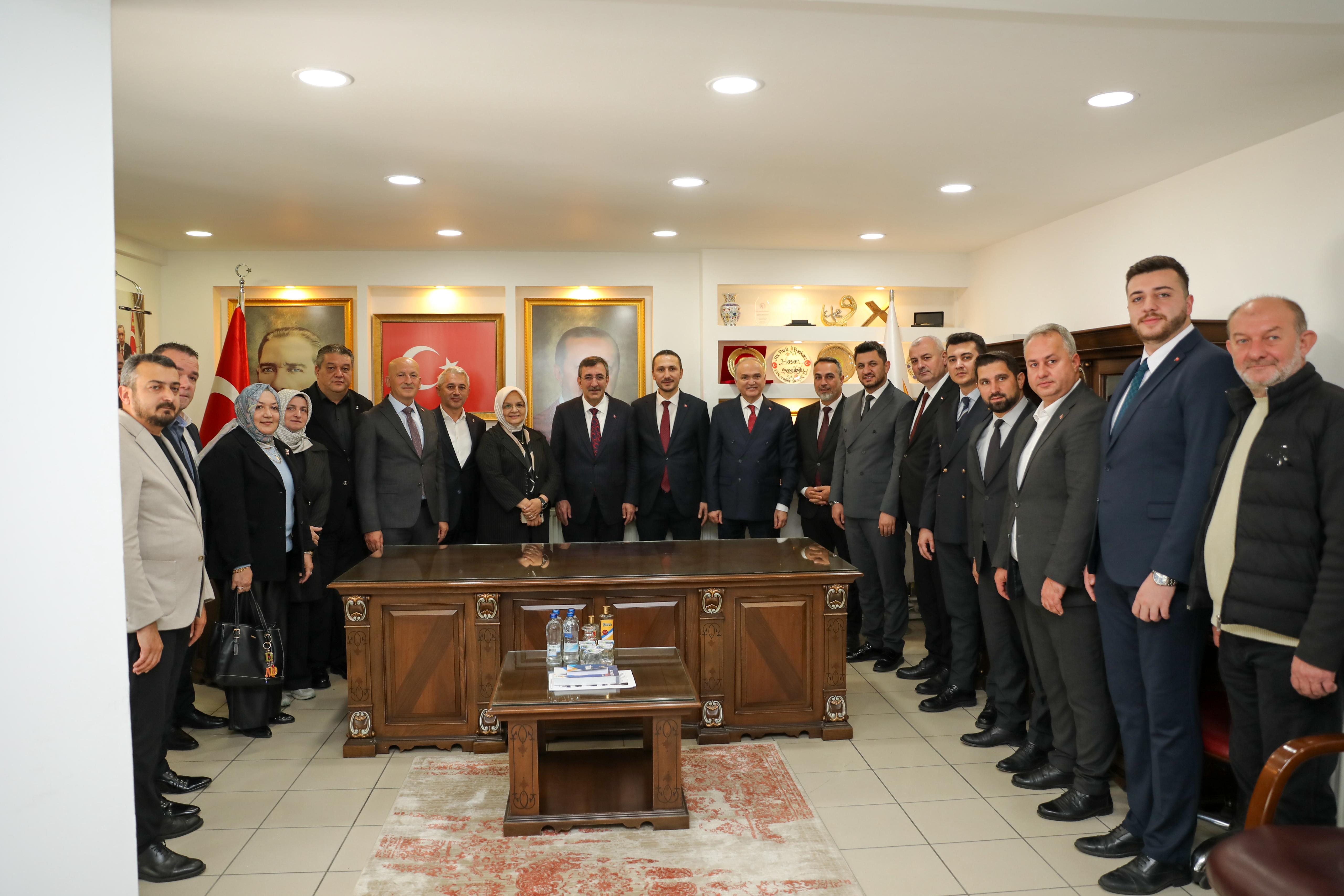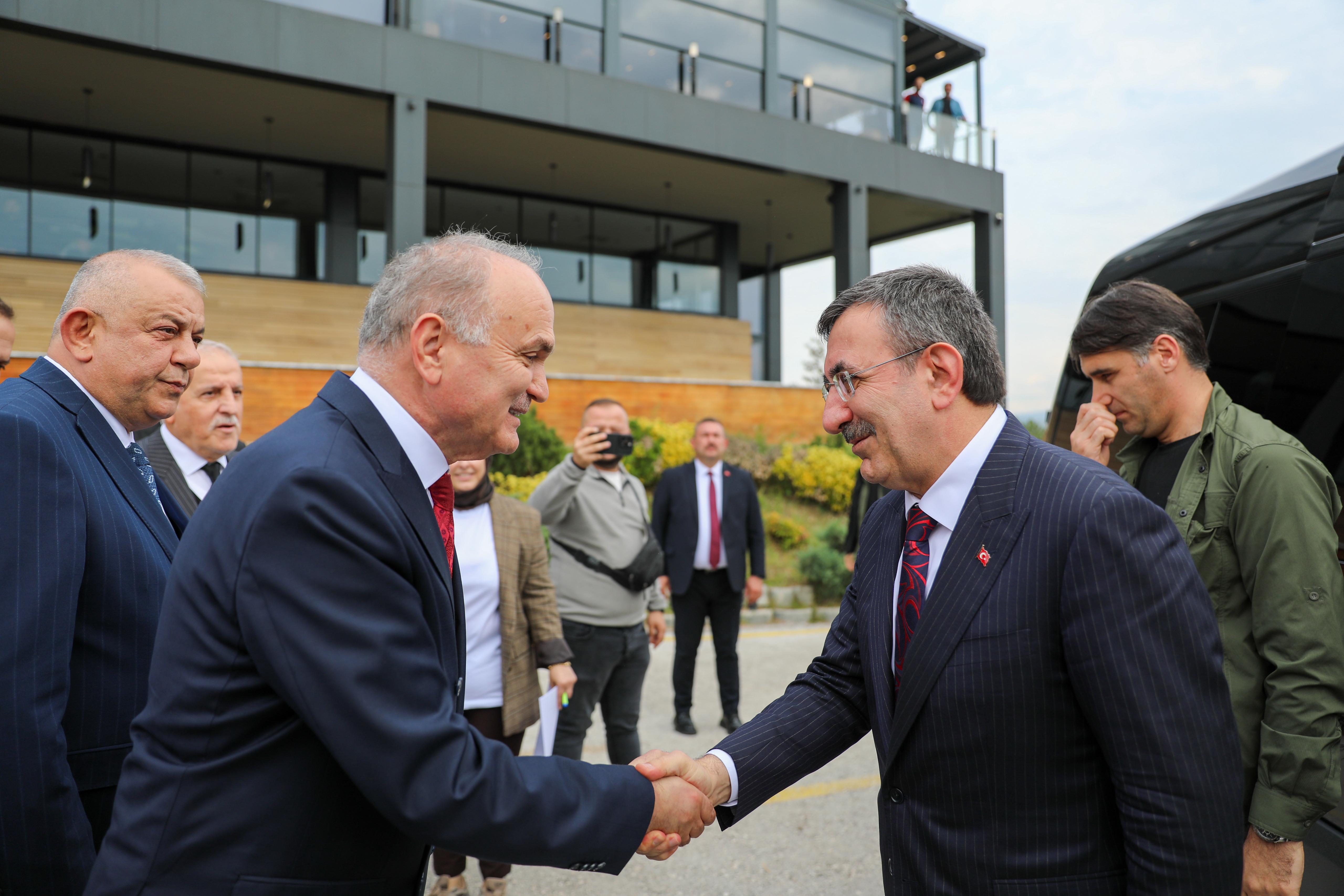 Cumhurbaşkanı Recep Tayyip Erdoğan’ın Yardımcısı Cevdet Yılmaz, Düzce ziyaretinde birçok kurum ve kuruluş temsilcilerinin hazır bulunduğu program kapsamında önce valiliği ardından AK Parti Düzce İl Başkanlığı’nı ve Düzce Üniversitesi’ni ziyaret etti. Cumhurbaşkanı Yardımcısı Yılmaz daha sonra Düzce Belediye Başkanı Dr. Faruk Özlü’nün ev sahipliğinde Düzce’de yatırımları bulunan ve vergi sıralamasına giren büyük şirketlerin sahipleri ile Mutfak Sanatları Merkezi’nde düzenlenen “İş Dünyası Buluşması”na katıldı.