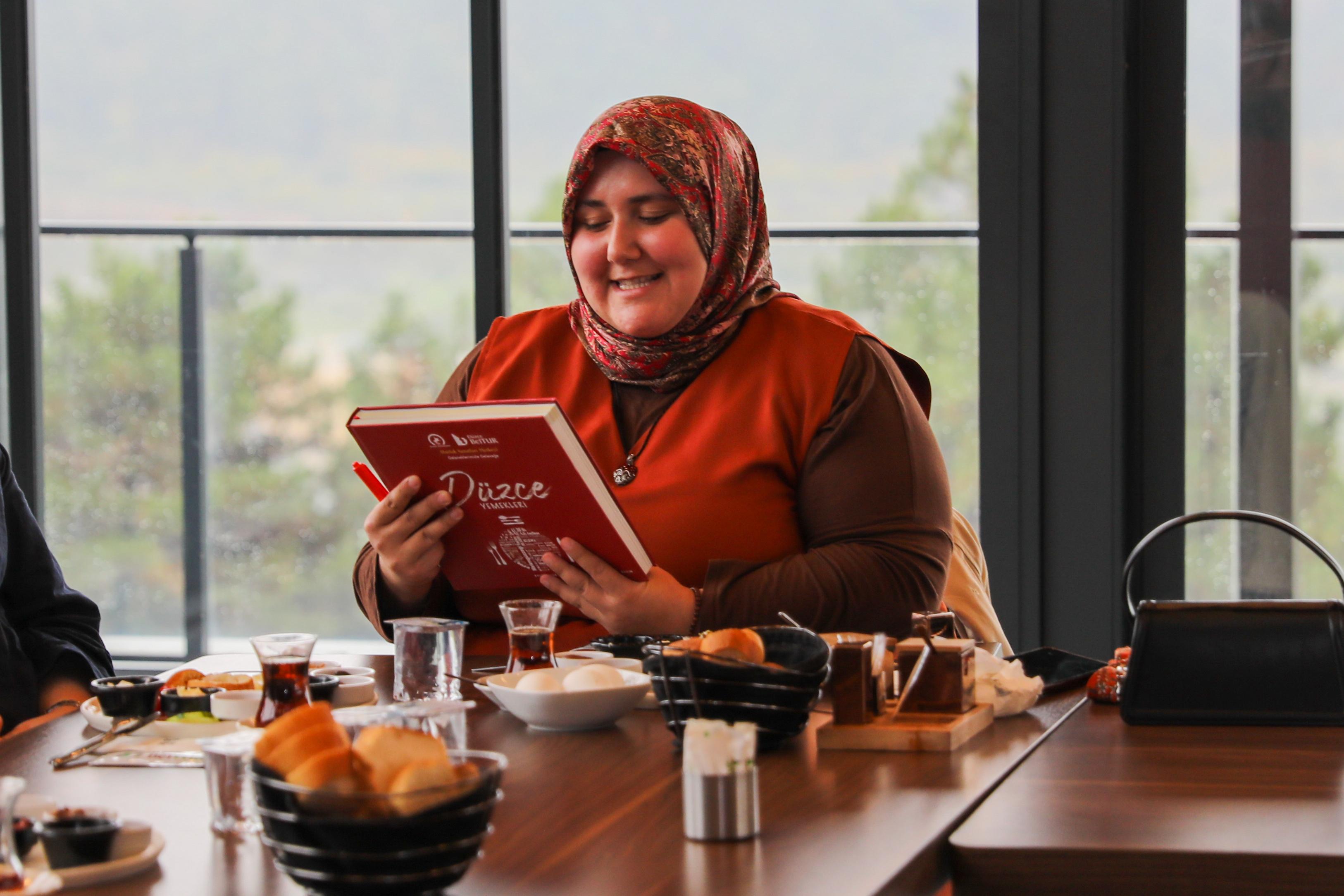 Düzce’nin doğası ve tarihi ile çok güzel bir şehir olduğunu ve bulundukları süre boyunca güzel zamanlar geçirmelerini temenni ettiğini kaydeden Başkan Özlü, “Düzce'nin çok zengin bir demografik yapısı var. Biz şu an Düzce’de şehir kimliği ve sosyal bütünleşme oluşturma yönünde büyük bir gayret sarf ediyoruz. Bugün Mutfak Sanatları Merkezi’mizdeyiz. Ben göreve geldikten sonra farklı demografik yapıya sahip insanları davet ettim, yemeklerini yapmalarını rica ettim. Yemeklerini yaptılar, tariflerini verdiler. Bunları Düzce Yemekleri Kitabı’nda topladık. İşte o kitaptaki yemeklerin yapıldığı yer olarak da burası inşa edildi” şeklinde konuştu.