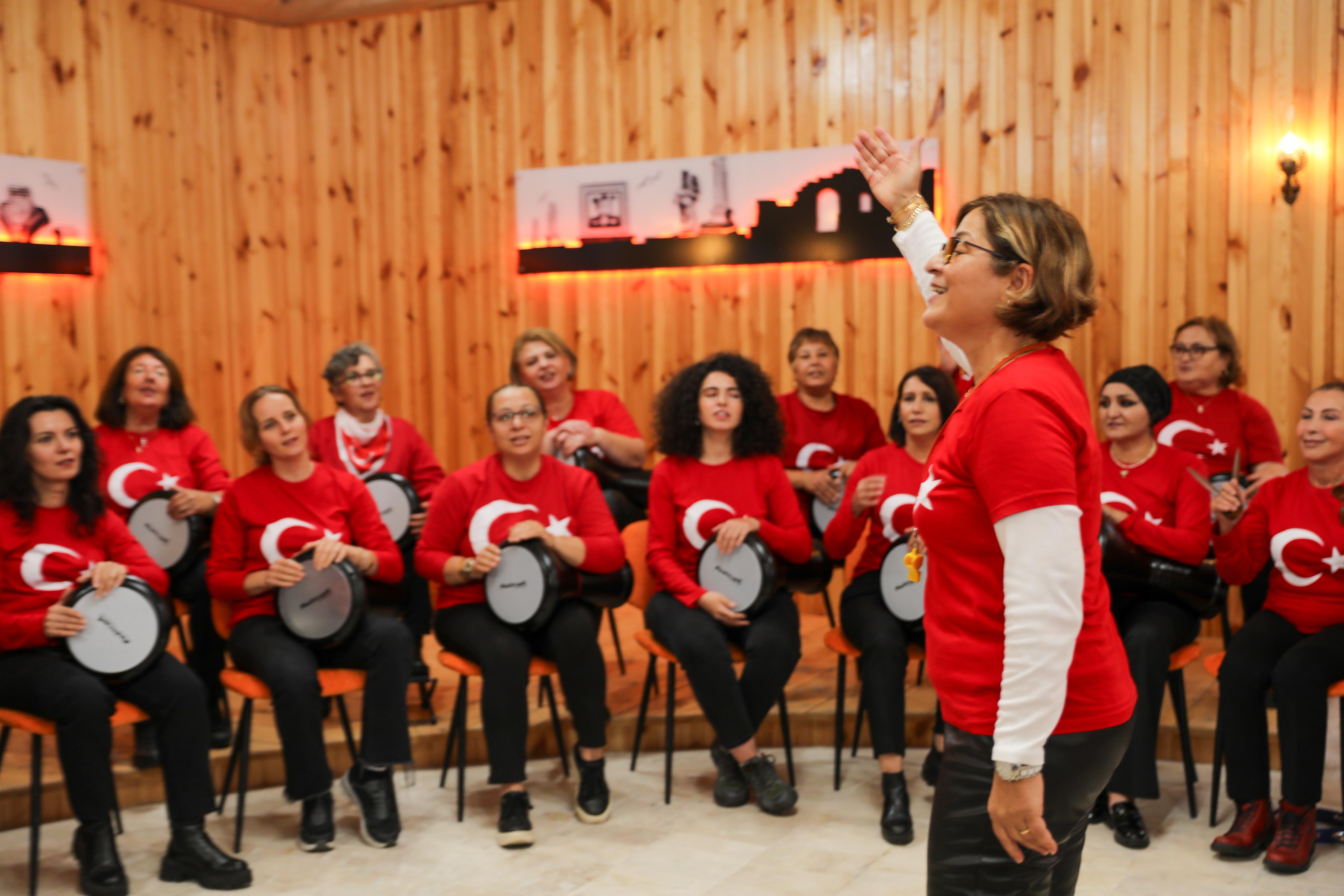 29 Ekim Cumhuriyet Bayramı gösterisi öncesi yapılan prova büyük bir coşkuyla tamamlanırken, Başkan Özlü ve beraberindekiler ritim grubunun seslendirdiği eserlerde alkışlarla tempo tutarak kadınların coşkusuna eşlik etti.