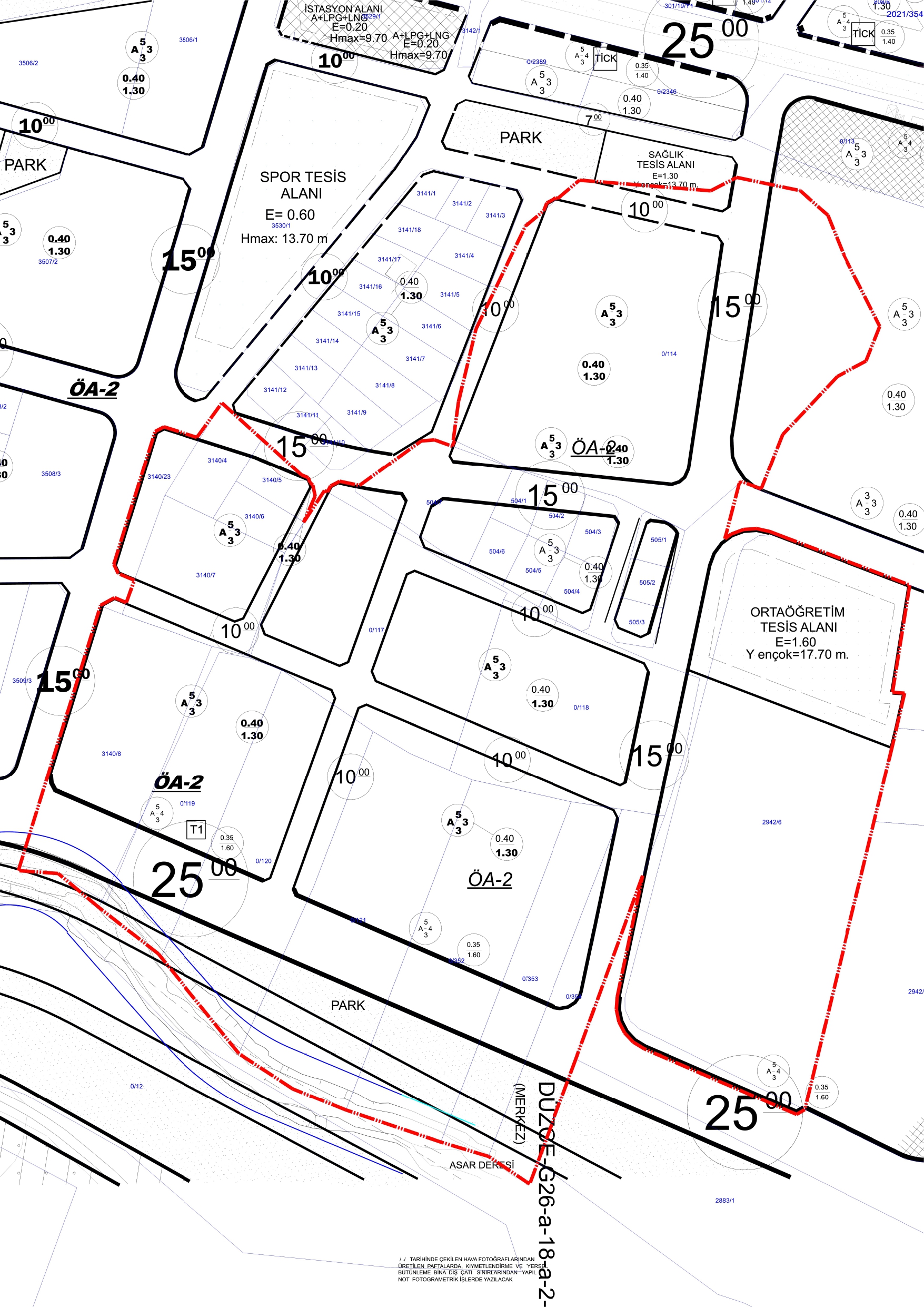 Düzce İli, Merkez İlçesi, Aziziye Mahallesi 114 – 117 – 118 – 119 – 120 – 121 – 302 - 352 – 353 – 354 – 504 ada 1 – 2 – 3 – 4 – 5 – 6 - 7 – 505 ada 1 – 2 – 3 -  2942 ada 6 parseller ile Mergiç Mahallesi 3140 ada 4 – 5 – 6 – 7 – 8 - 23 nolu  parsellerin, bulunduğu alanda 3194 sayılı İmar Kanununun 18. Maddesi ile 2981/3290 sayılı İmar Affı Kanununun Ek-1 maddesine dayanılarak 18/11/2025  tarih ve 1846  sayılı encümen kararı gereğince Re’sen düzenlemeye tabi tutulmuştur