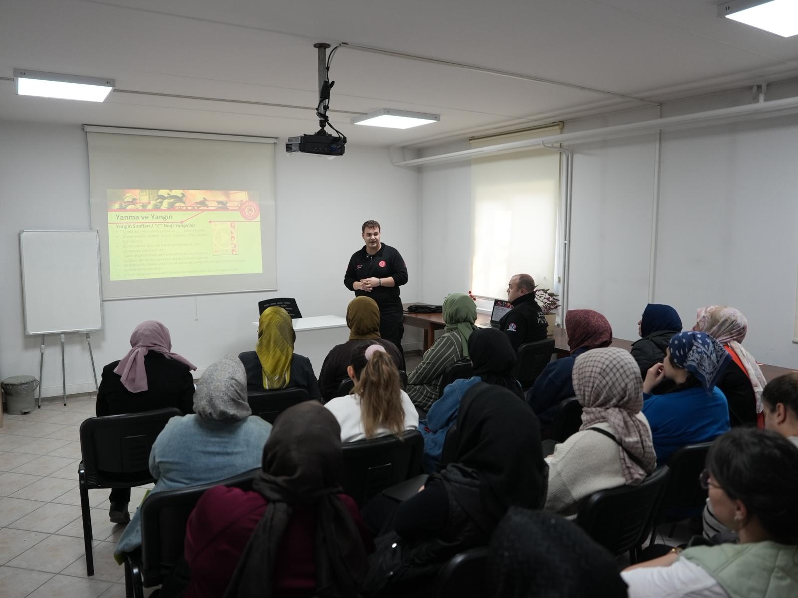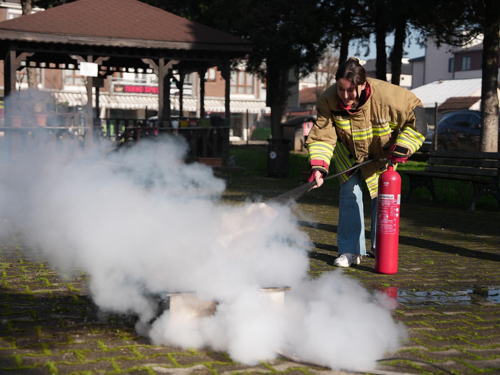 Eğitimin uygulamalı bölümünde ise yangın söndürme tüpünün doğru ve güvenli kullanımı anlatılarak, kursiyerlere birebir müdahale pratiği yaptırıldı. Olası yangın durumlarında bilinçli ve doğru hareket etmenin önemini öğrenen kursiyerler, eğitimden duydukları memnuniyeti dile getirdi.