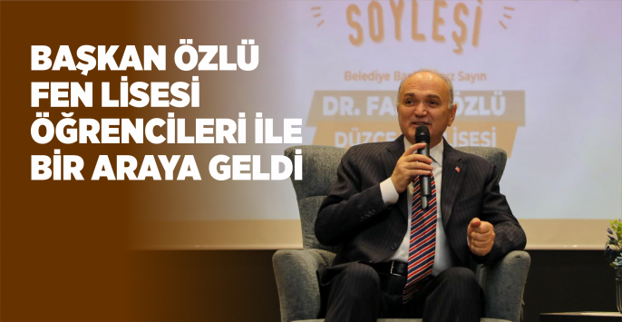 Düzce Belediye Başkanı Dr. Faruk Özlü, lise öğrencileri ile söyleşi buluşmalarını sürdürüyor. Düzce İl Milli Eğitim Müdürlüğü projesi kapsamında düzenlenen etkinlikte Düzce Fen Lisesi öğrencileri ile bir araya gelen Başkan Özlü, İl Milli Eğitim Müdürü Gülşen Özer, okul müdürü, öğretmen ve öğrencilerle bir araya gelerek tecrübelerini paylaştı.
