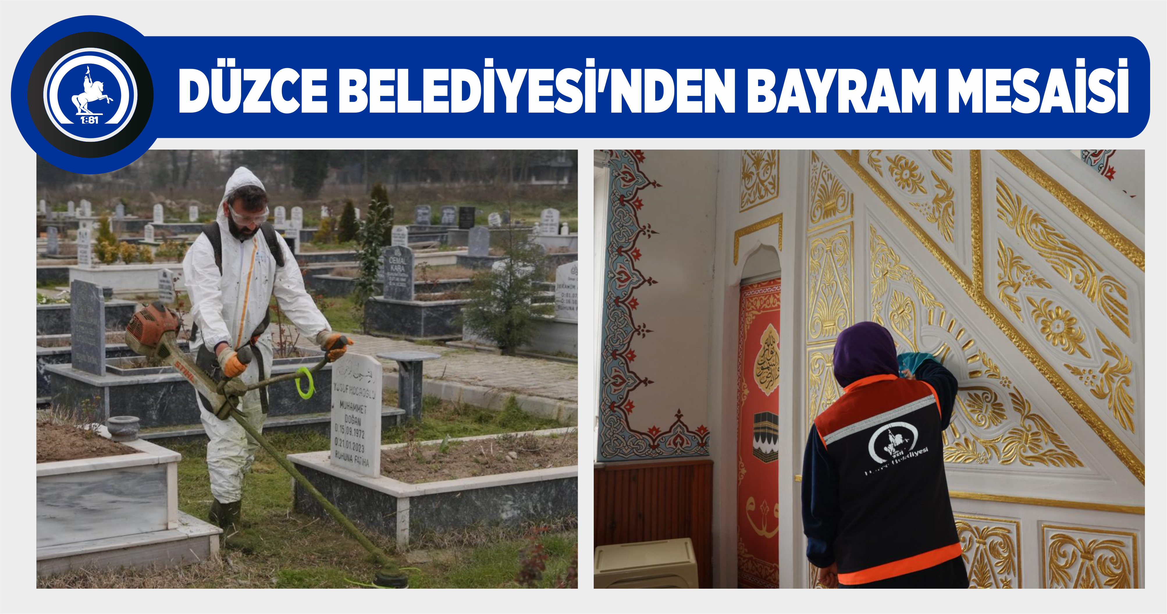 Düzce Belediyesi, yaklaşan Ramazan Bayramı öncesinde şehri daha temiz, daha düzenli ve yaşanabilir hale getirmek için çalışmalarını tüm hızıyla sürdürüyor. Temizlik İşleri Müdürlüğü, Park ve Bahçeler Müdürlüğü ile Mezarlık İşleri Müdürlüğü ekipleri işbirliğinde mezarlıklarda ve camilerde temizlik çalışmaları gerçekleştiriliyor.
