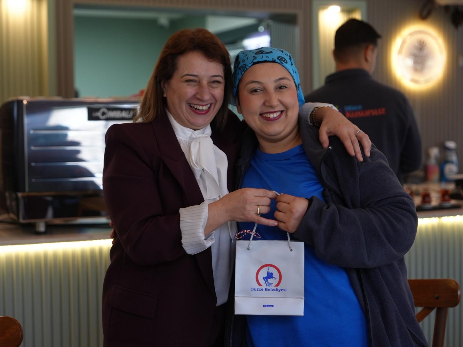 Ziyarette kafe çalışanlarıyla bir araya gelen Düzce Belediye Başkan Yardımcısı Ayşe Kılıç ve Sosyal Hizmetler Müdürü Ümit Bayraktar, kafenin özel bireyleriyle sohbet ederek eğlenceli vakit geçirdi.