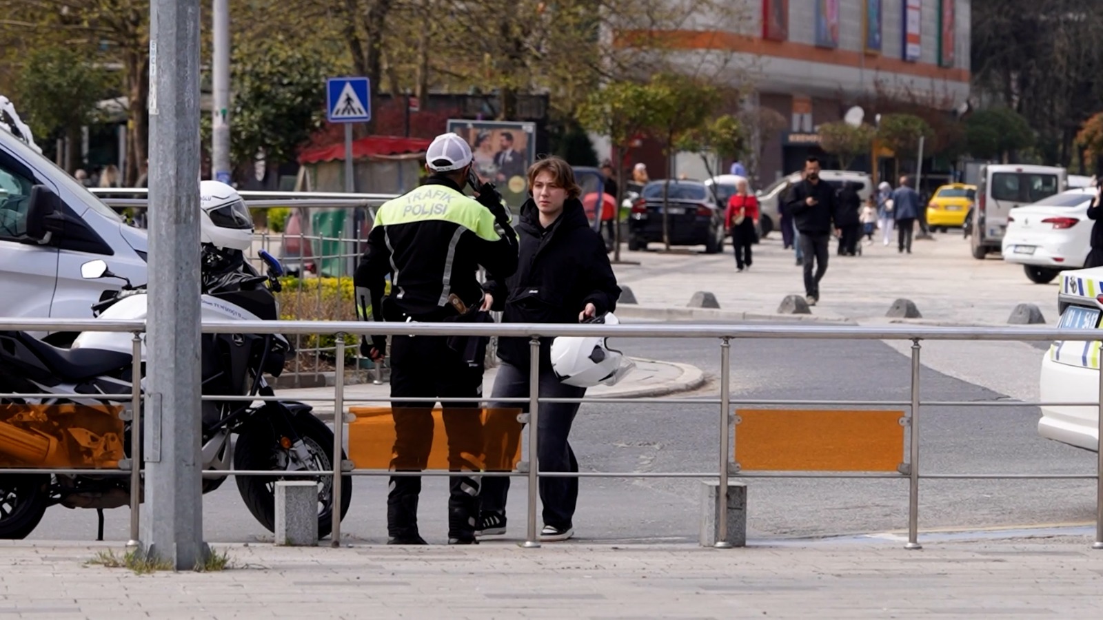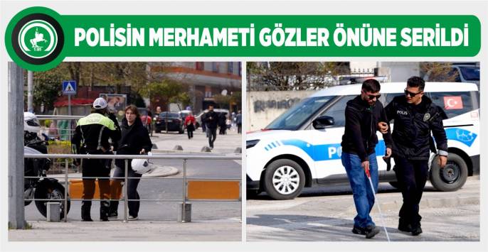 Bir diğer senaryoda ise görme engelli bir vatandaşın yoğun trafik akışı içerisinde yaya geçidinden karşıya geçmeye çalıştığı anlar canlandırıldı. O esnada her şeyden habersiz görevli polis ekipleri, trafiği durdurarak vatandaşa güvenli bir şekilde yolun karşısına geçmesi için yardımcı oldu. Bu duyarlı davranışın ardından polisler, yine belediye ekiplerinin çiçekli sürpriziyle karşılaştı.