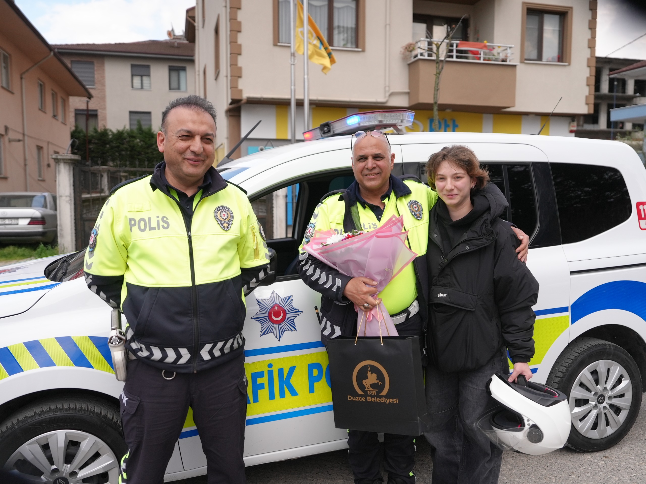Özel günlerde hazırladığı videolarla ülke gündeminde geniş yer bulan Düzce Belediyesi Basın Yayın ve Halkla İlişkiler Müdürlüğü, Polis Haftasında emniyet teşkilatını unutmadı. Düzce İl Emniyet Müdürlüğü’nde görevli polislere yönelik düzenlenen ilk senaryoda, sınava yetişmekte zorlanan bir öğrenci polis ekiplerinden yardım istedi. Durumu tereddütsüz değerlendiren ekipler, öğrenciyi hızla Düzce Üniversitesi Meslek Yüksekokulu’ndaki sınav yerine ulaştırdı. Görevlerini büyük bir hassasiyetle yerine getiren polisler, okulda kendilerini bekleyen belediye ekipleri tarafından çiçeklerle karşılandı.