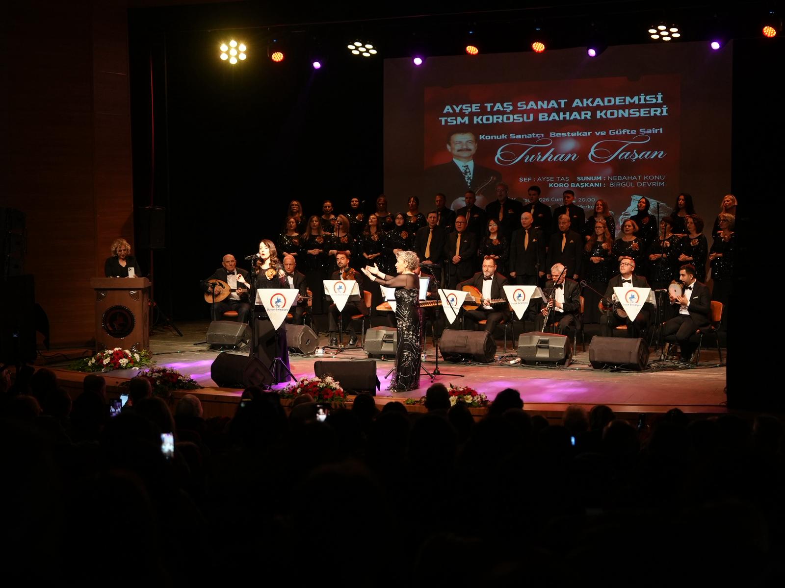 Düzce Belediyesi Ayşe Taş Sanat Akademisi Türk Sanat Müziği (TSM) Korosu Bahar Konseri, Prof. Dr. Erol Güngör Kültür Merkezi’nde sanatseverlerin büyük ilgisiyle gerçekleştirildi. Türk sanat müziği repertuarına hem besteci hem de söz yazarı olarak önemli eserler kazandıran Turhan Taşan, geceye konuk sanatçı olarak katıldı.