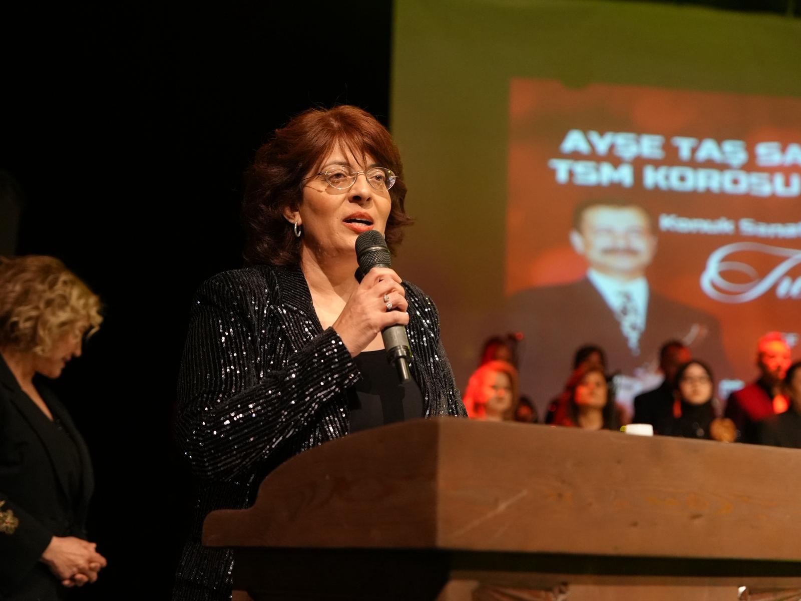 Sunuculuğunu Nebahat Konu’nun üstlendiği gecede, Ayşe Taş şefliğindeki koro, usta sanatçının eserlerini başarıyla seslendirerek dinleyicilerden tam not aldı.